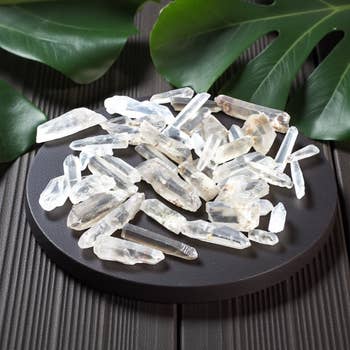 SC-DTC Double Terminated Clear Quartz Minis. Sizes vary from 3/4" to 1-1/2". Min. 3 Clear quartz is believed to amplify energy, clarify thought, and promote spiritual growth and balance.