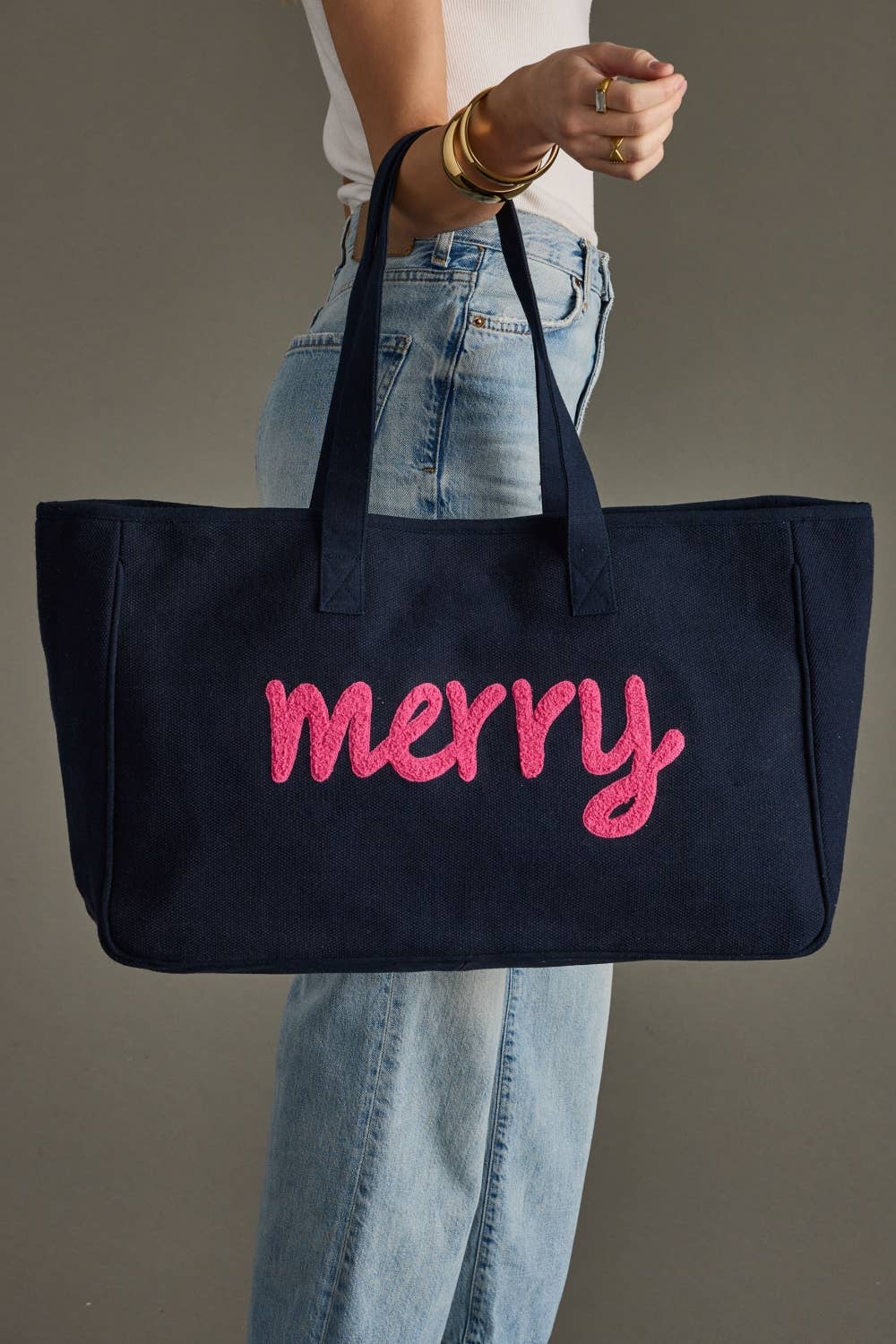 Merry Christmas Script Carryall Tote Gold/White 22x19x8