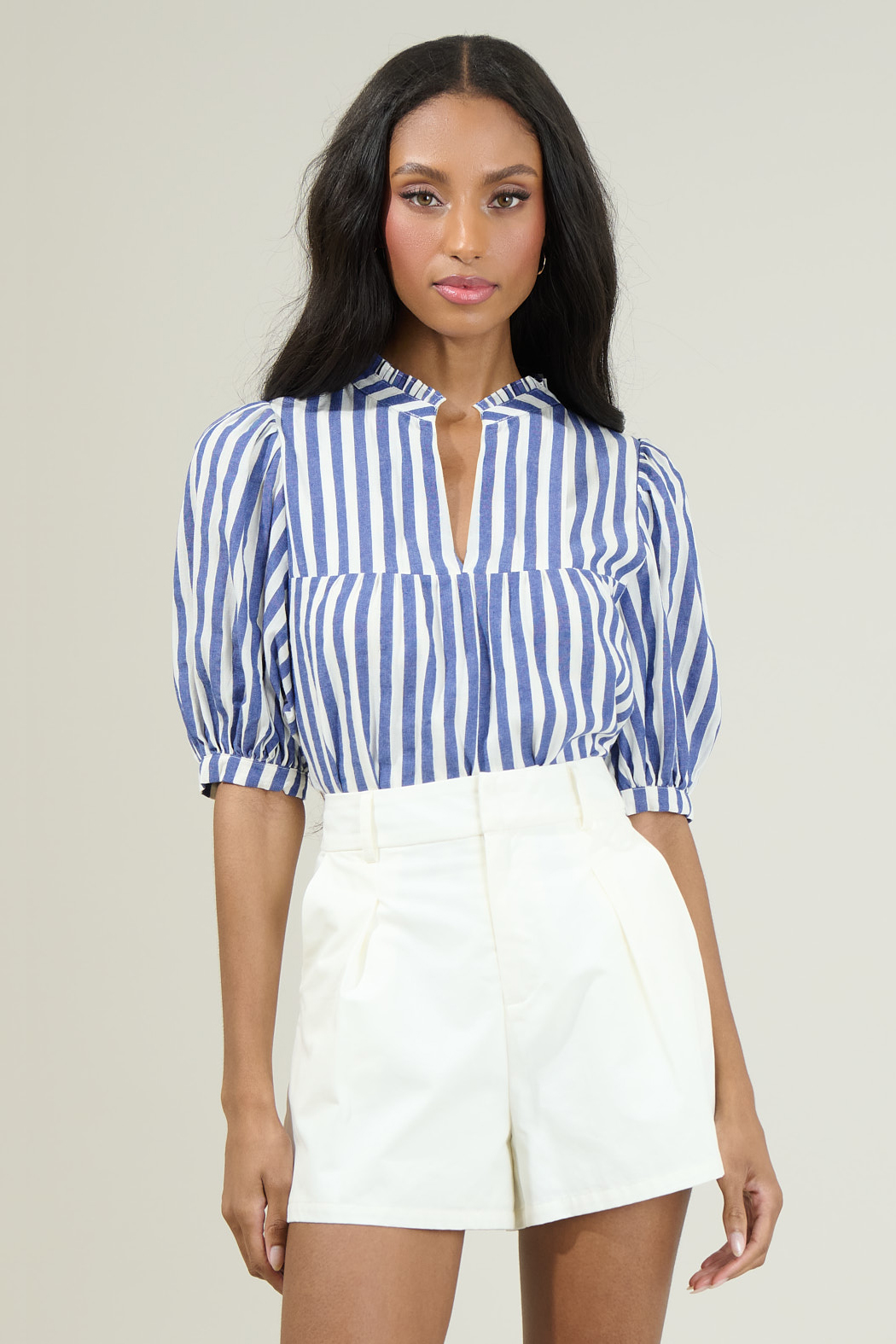 Our Stripe Half Placket Shirt is a piece from Fun2Fun, a brand known for its timeless styles. Made from 100% polyester, this shirt is designed in LA for the everyday woman. The striped design adds a touch of sophistication, making it a versatile addition to your wardrobe. Pair it with your favorite jeans or skirt.