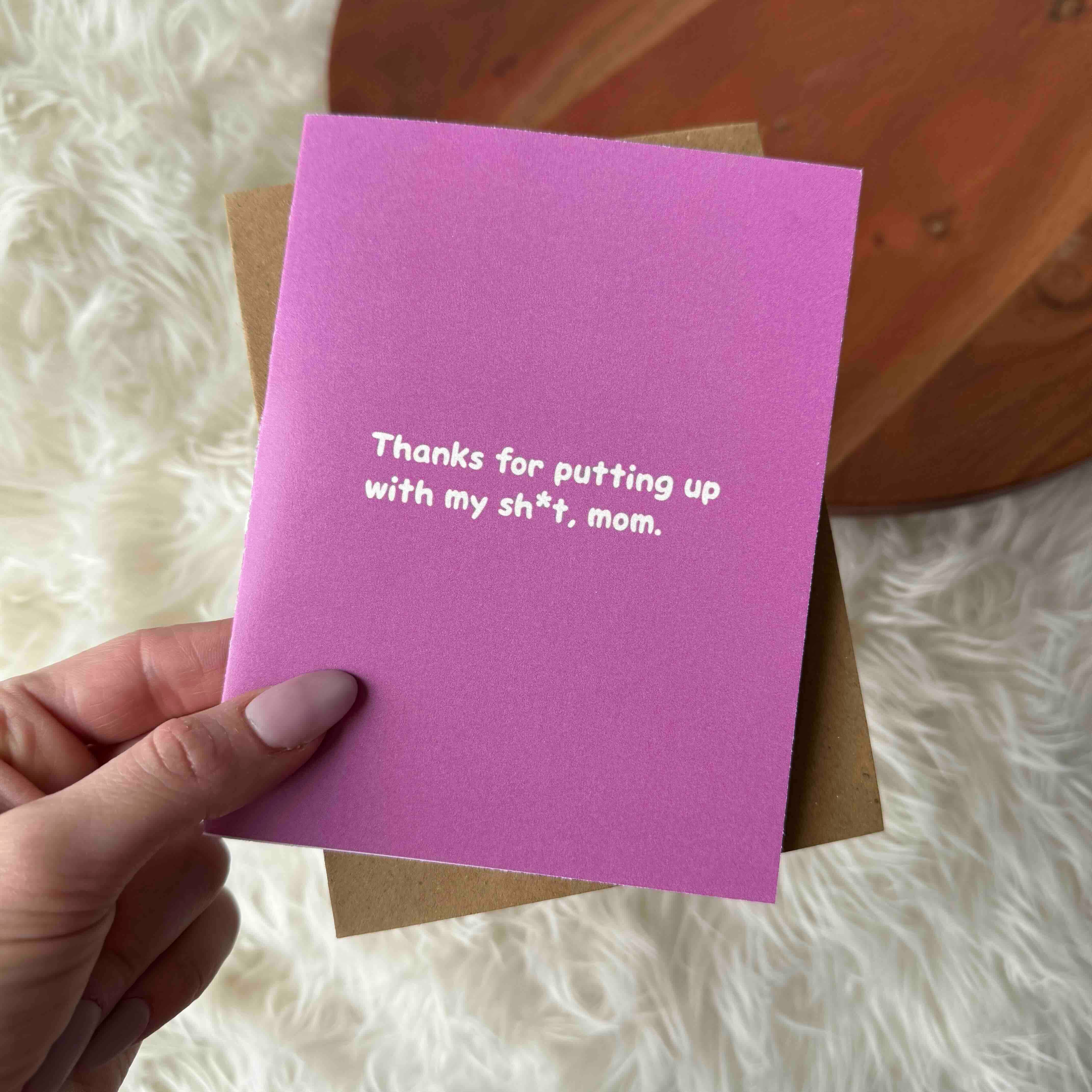 SKU: TM003 Made in Canada Color: Purple and White Occasion Theme: Birthday, Mother's Day, and Thinking of You Recipient: Parents and Women Season: Spring and Year-Round Special Feature: Blank Theme: Family & Friendship Tone: Funny Weight: 22.68 g (0.8 oz)