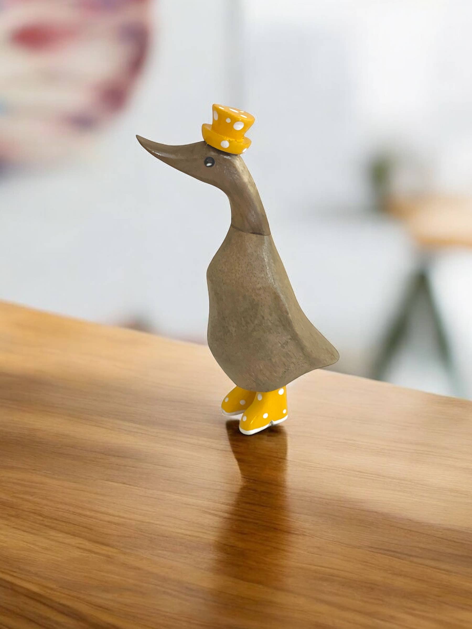 - Wooden Bamboo Duck Statue Figurine - Nice Coastal Home Decor Features Hand Painted Designs And Vibrant Colors A Nice Addition To Any Decor - Whimsical And Unique Materials: Bamboo And Wood Dimensions: Each figurine stands 5 inches high and 3 inches wide, providing a charming presence. Handmade Disclaimer Finding beauty in imperfection Please understand that all our products are handmade, and even though artisans make every effort to create only the best, natural blemishes and imperfections are what make each piece unique, captivating and rich in stunning details.
