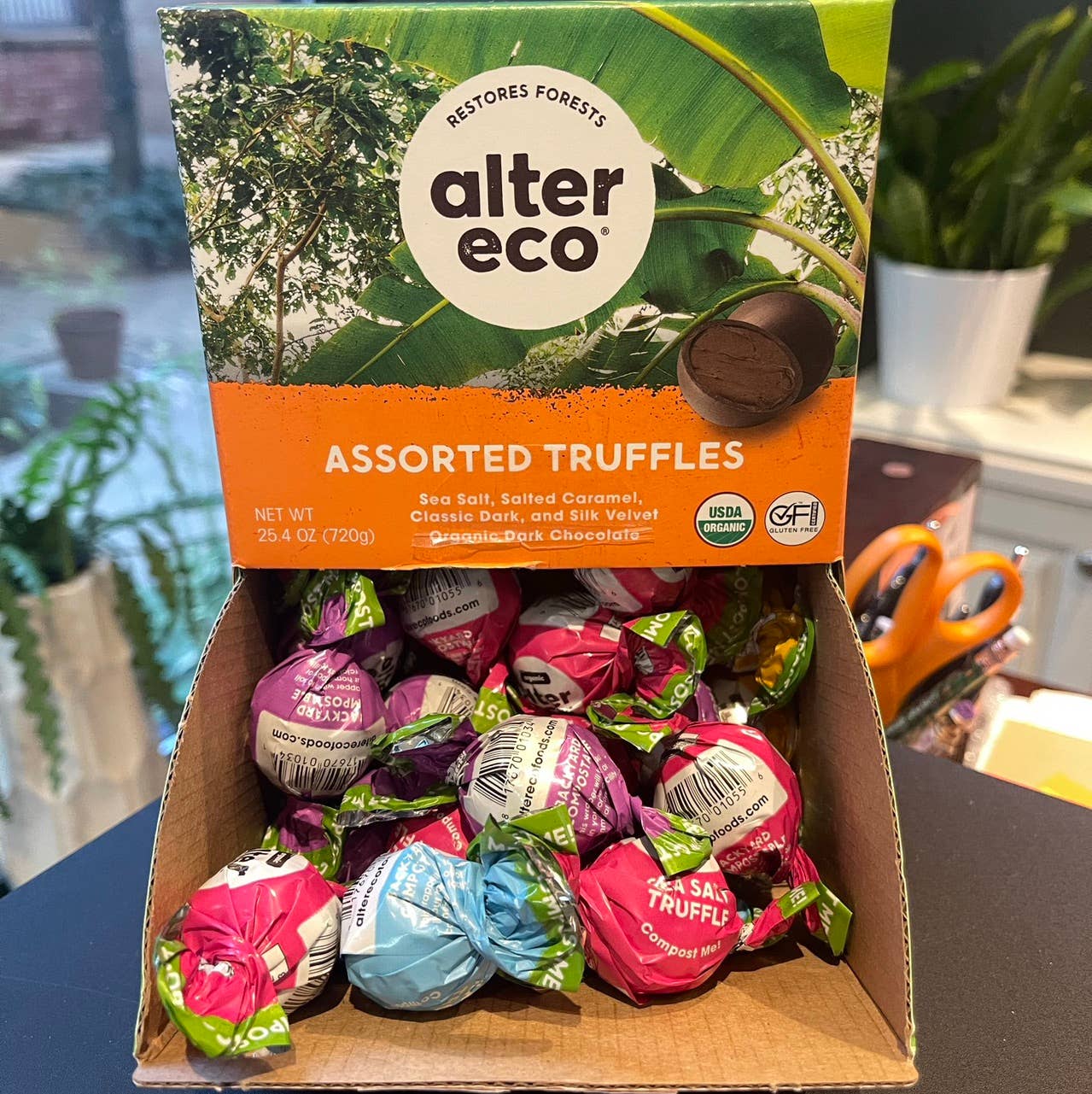Not only is the chocolate the best tasting chocolate ever, the variety is perfect, the ingredients impeccable- and the wrappers are backyard compostable! Fantastic! The display box is perfect. Everything about these chocolate truffles is spot on. 👍💗🥳