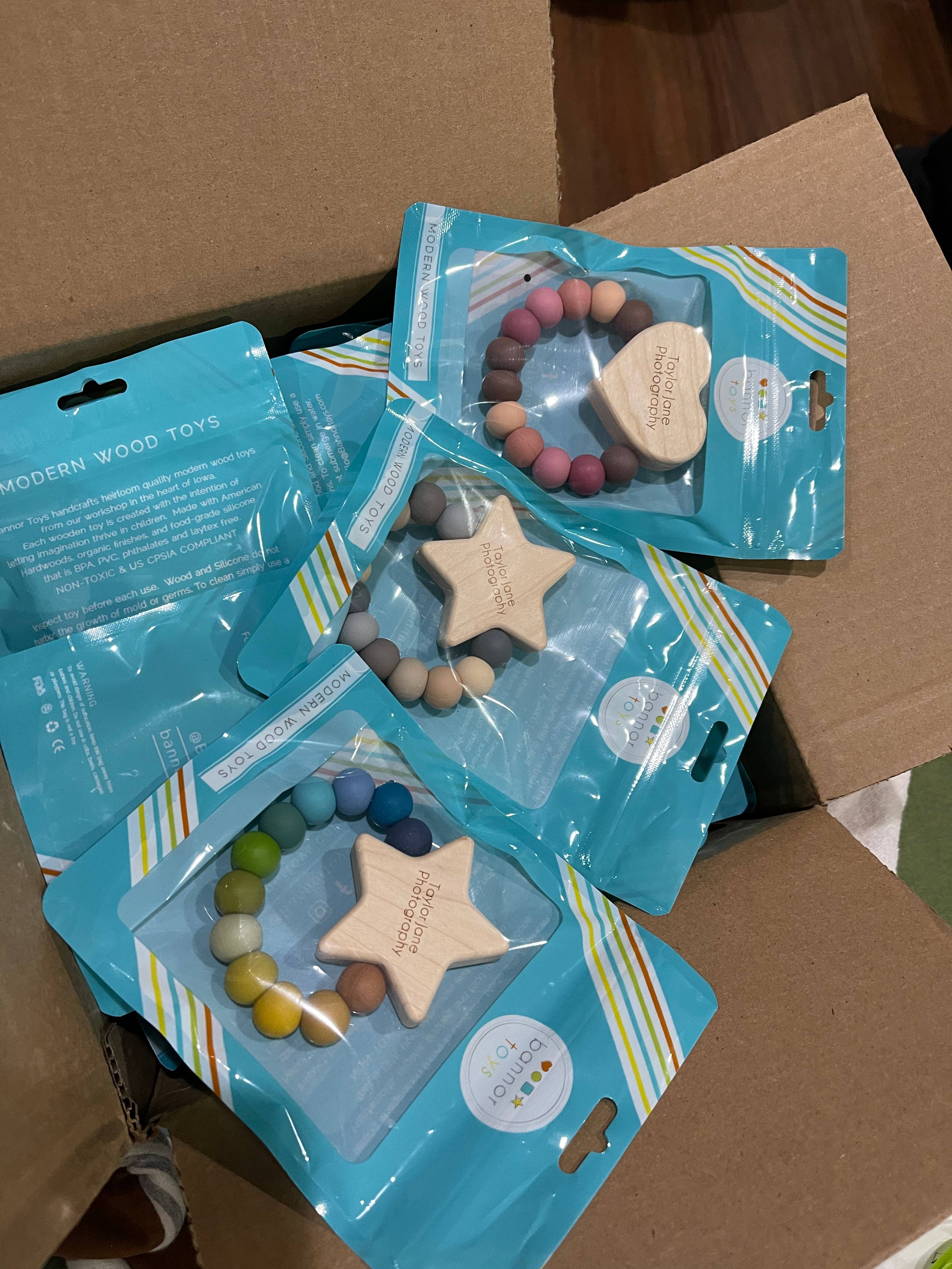 This listing is to add your store logo or city name to your toys. Please note that this is per piece, so if you want 10 items engraved, you need to add a quantity of 10 to your order. This is NOT for personalizing with names, as we will only do store logos or city names on you items and they must all be the same for your order. The sizing will be formatted to best fit your toy. If you have questions about what can be engraved or if you need to send us a file for the engraving, please message us before purchasing. ***There are select items that CANNOT be engraved, those include our ring teethers (classic teethers, Saturn ring, and bubble teethers) and bar rattles (classic and color block rattles).***