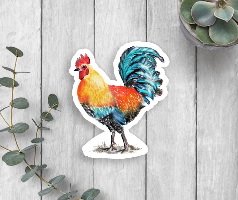 Henpecked Rooster Retro Sticker
