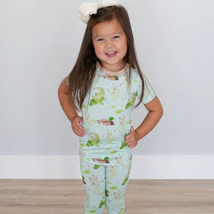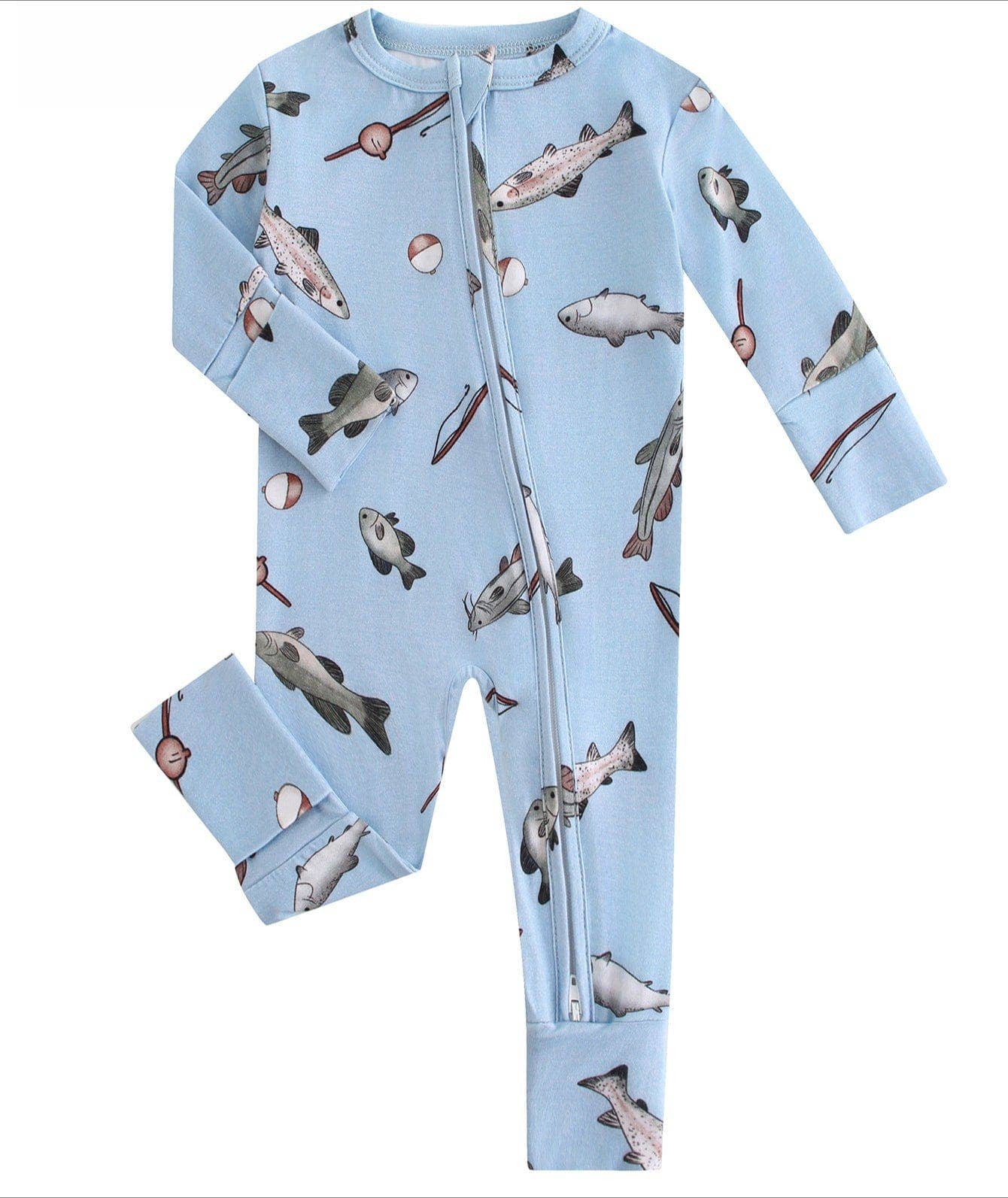* Alligator/Duck watercolor design * Made from soft, stretchable fabric 95% viscose from bamboo, 5% spandex * Double zipper for easily accessible diaper changes * Tag-free for delicate skin * Fold-over footie option for sleepwear * Fold-over hand mittens to prevent scratches * For child's safety, sleepwear should fit snug * Runs big, size down for a snug fit