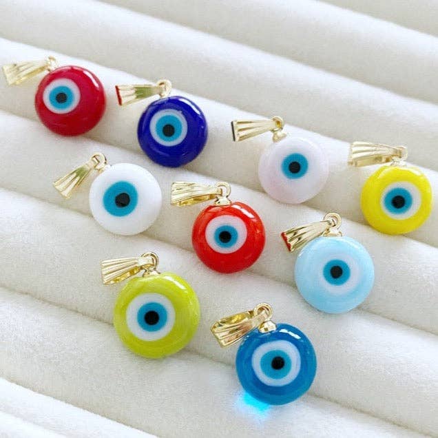 Shell Pearl Lucky Eye Bead Size: 20mm Price Per Charm 18K Plated We recommend the product care instructions below to make your jewelry last even longer. Product Care: -Apply beauty products such as perfume, hairspray or deodorant before wearing your jewelry as certain chemicals in these products may damage the finish. Always remove your jewelry before swimming, bathing, doing household chores or using abrasive cleaners. - Fast Shipping - orders ship in 1-2 business days - Satisfaction Guarantee, Returns Accepted - Please ask for larger quantities if would like more than what is currently listed! - For international customers: Import duties, taxes, and charges are not included in the item price or shipping cost.