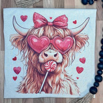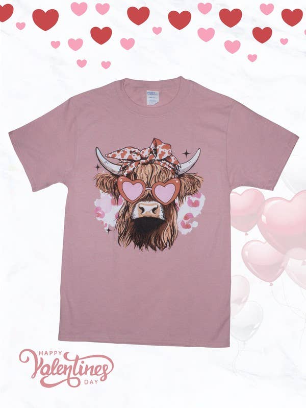 Highland Cow, Red Bandana, Flower, Farm Country, Western Graphic Tee. Most t-shirt colors are 52/48 cotton/polyester blend. Athletic Heather & Black Heather are 90/10 cotton/polyester. White, cream, citron, pink, canvas red, lilac, mint are 100% cotton. Ash is 99/1.