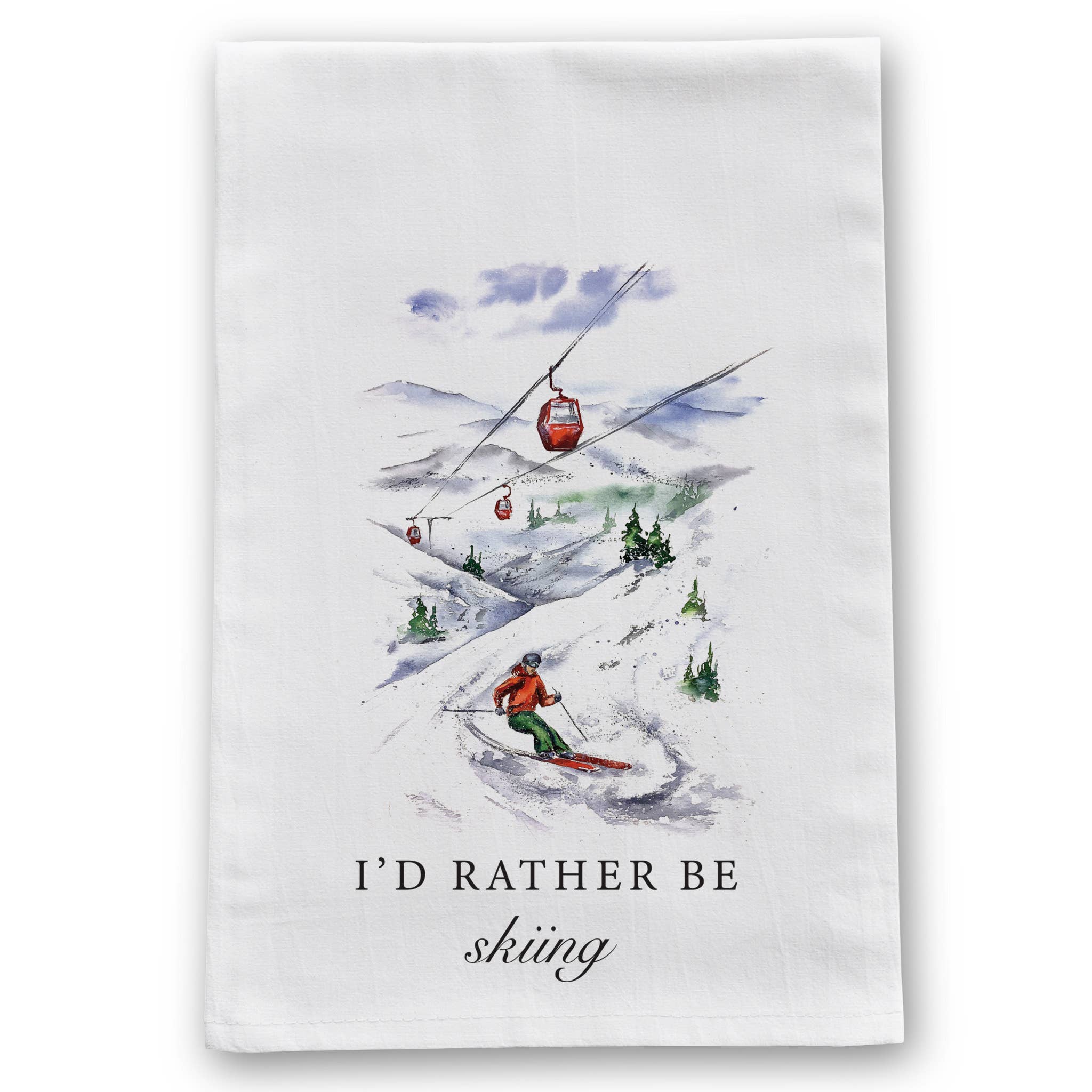 No matter which direction you're headed on the slopes, this towel conjures great memories of snowy days with friends and family. Our cotton tea towels are soft, absorbent and durable, true kitchen workhorses. Perfect for drying glasses, helping bread rise, sopping up spills or as a lovely hand towel. They're so pretty you *almost* won't mind doing the dishes at all. • Screen-printed by hand • Non-toxic, eco friendly inks • 100% cotton • 18”x28” • Machine washable • Ideal souvenir, Packs up easily • Made in the USA • Beautiful & Functional Keywords: best selling tea towels, tea towels, winter tea towels, mountain tea towels, mountain decor, ski decor, Ski inspired, Skiing, ski, ski signs, aprés ski, ski patrol, screen printed tea towels, kitchen towels, kitchen decor, made in the USA, handmade, dish towels, gifts, presents, kimball prints, trending