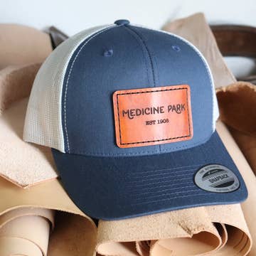 Premium wholesale Yupoong trucker hats featuring genuine leather patches, crafted to perfection. Each patch is carefully designed with a hand dyed tan leather patch, laser engraved, the town and established date of your choice. These high-quality trucker hats offer the perfect blend of style and durability. The custom leather patch adds a rustic yet polished touch to your look, making them ideal for custom orders, promotional events, or personal use. Whether you're creating a unique gift or building your brand, these hats are sure to impress! Hat Brand: Yupoong Hat Style: Classic Trucker Hat â Featuring a breathable mesh back and an adjustable snapback closure. Material: 100% polyester front panel; mesh back for breathability. Leather Patch: 4-5 oz Genuine leather, dyed tan, sewn on with precision. Custom Design: Laser engraved patch with your city/year Pick your hat color - must order in increments of 6 // Pick hat color