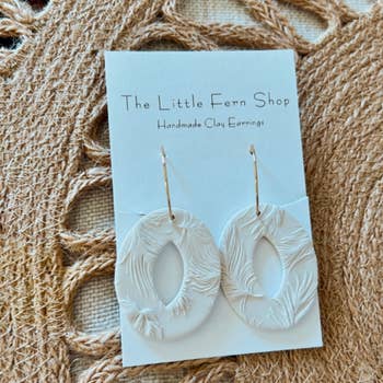 Lightweight, handmade polymer clay earrings. Gold-plated stainless steel earring posts. The speckled ivory color + rattan texture is a perfect match in this everyday neutral dangle earring. *Variations of design may occur due to the handmade nature of the product.