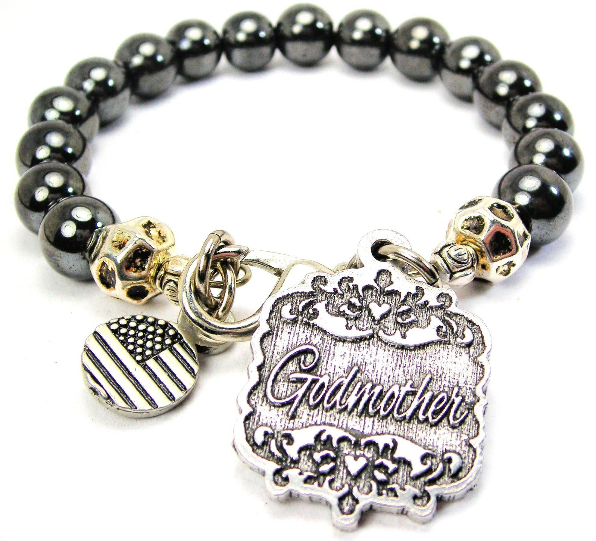 Each bangle is single but gives the illusion of three. Exclusive to us, this bangle also features a 100% American pewter charm and is expandable from 7 inches - 8 inches making it one size fits most.