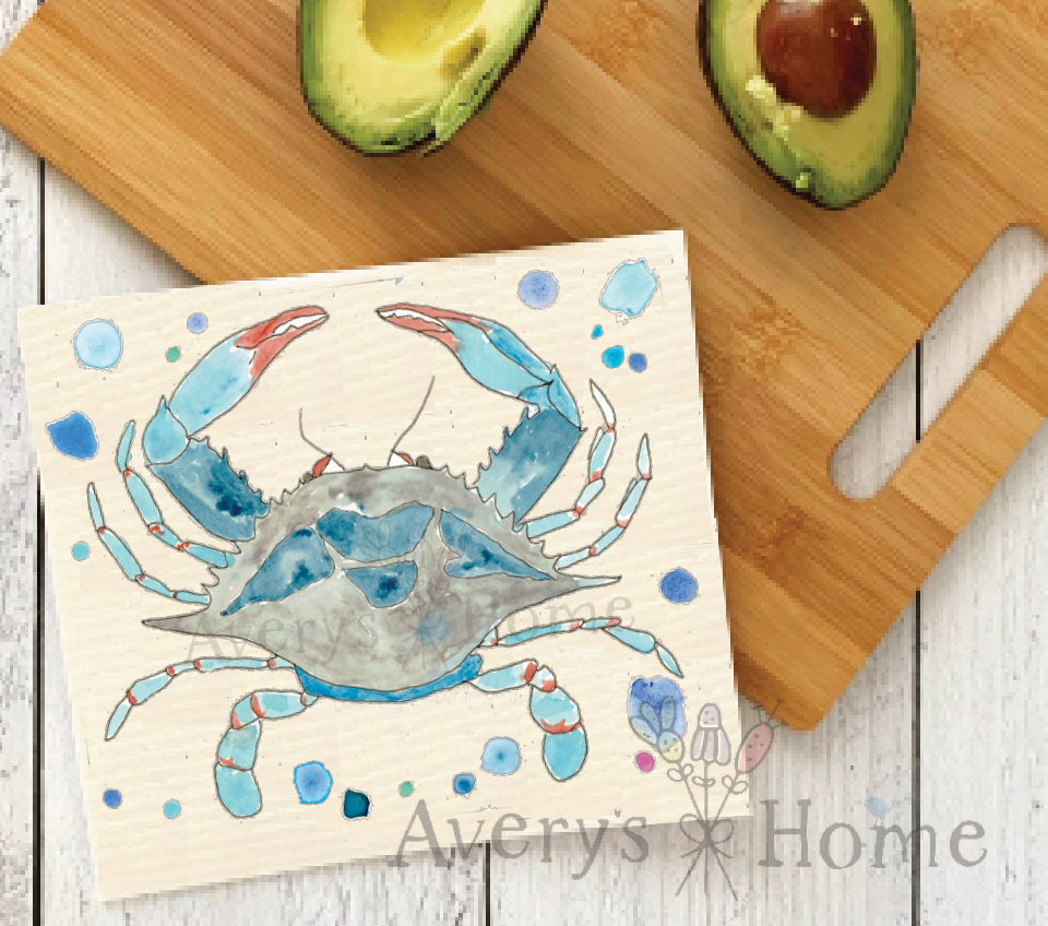 Blue Crab Ocean Customizable Coastal Tea Towel