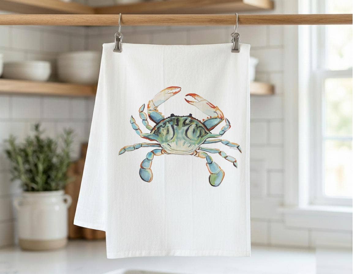 Avery's Home - Wholesale Tea Towel - Blue Crab Ocean Customizable Coastal Tea Towel0