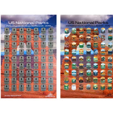 From Central Park to the Golden Gate Bridge, each of the US' most iconic landmarks are covered in silver foil, just waiting to be scratched off once you've visited them! Below the foil, you’ll find a beautiful photo of each destination. Use this 16x20 poster to track your travels, inspire adventures, and complete your bucket list! Comes packaged in a plastic sleeve with chipboard backing and an eye-catching explanatory sticker on front. Instructions and scratcher tool included.