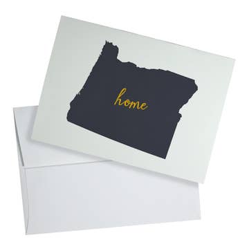 This Alaska notecard set depicts the unique blue/green beauty of the mountains. All 50 states available Originally hand-painted with watercolors Printed in the USA 6 pack A2 Envelopes included Extra Heavy-weight card stock Packaged in a clear cello sleeve and tied with blue & white twine All 50 states available Also available in art print and vinyl decal form
