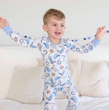 Get The Look Upgrade your toddler's sleepwear with our super soft bamboo two-piece set! Our Cape Cod Sailboat and Seagulls pajama set is inspired by nautical adventures on Cape Cod and The Islands. We love the pale blue background, cute sailboats and fun seagulls. Details - The softest, stretchiest Basically Soho bamboo viscose fabric, your toddler won't want to take these off - No buttons or interior tags for ultimate comfort - Long sleeve top and matching pant - Signature Basically Soho Cape Cod Collection design, the same as our zippered romper for matching sibling moments Fabric + Care - 95% viscose from bamboo, 5% spandex - Machine washable - If in between sizes, we recommend sizing up, as our sleepwear can run small.