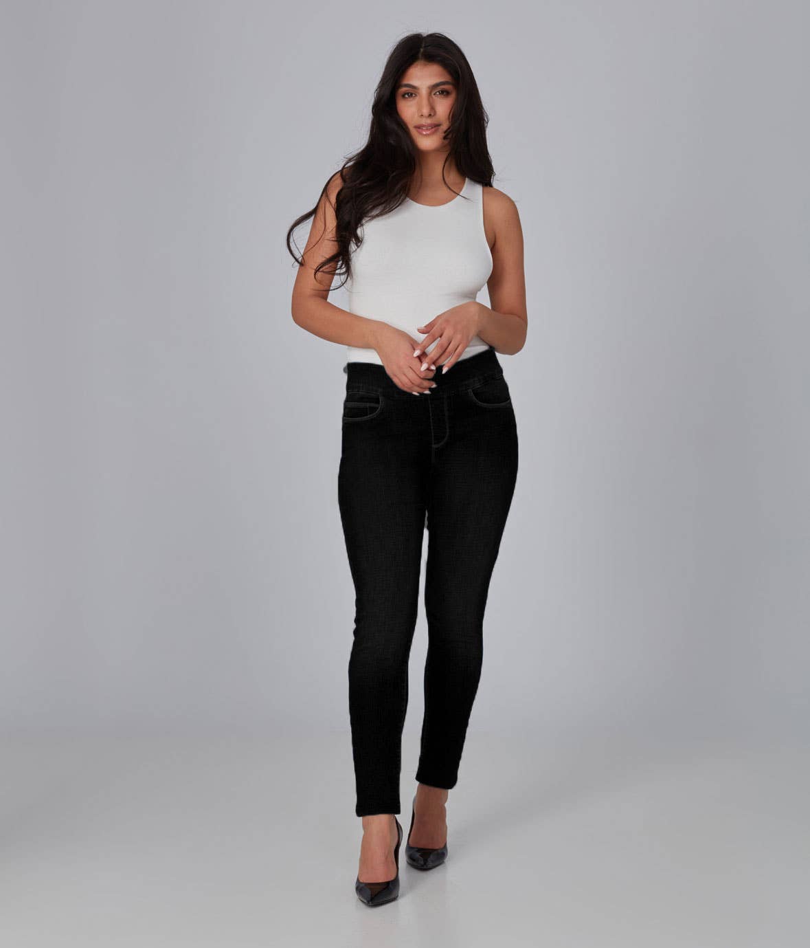 SKU: 204400 Made in China Aesthetic: Casual and Classic Care Instructions: Machine wash Fabric: Super Stretch, 77% Cotton, 21% Polyester, 2% Spandex Fit: Missy Occasion: Everyday Season: Core UPC: 827284453168