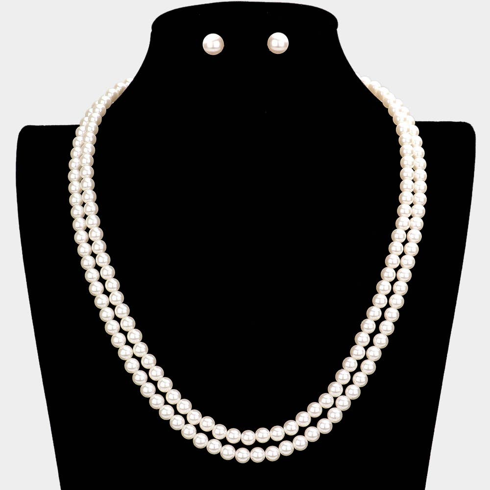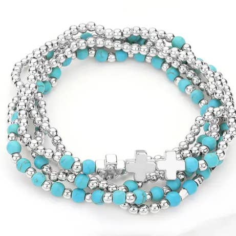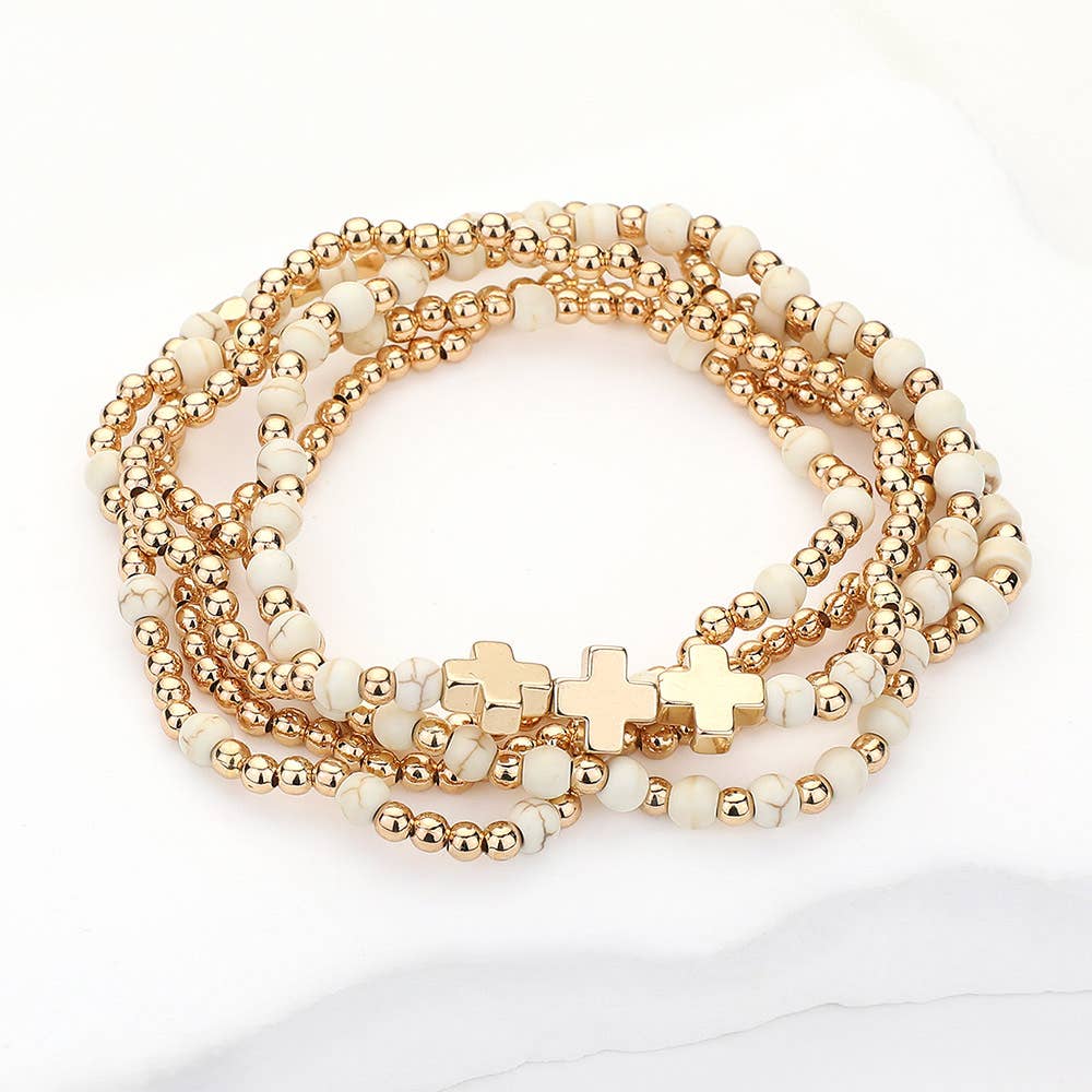 Hammered Metal Cross Pendant Double Layered Chain Necklace
