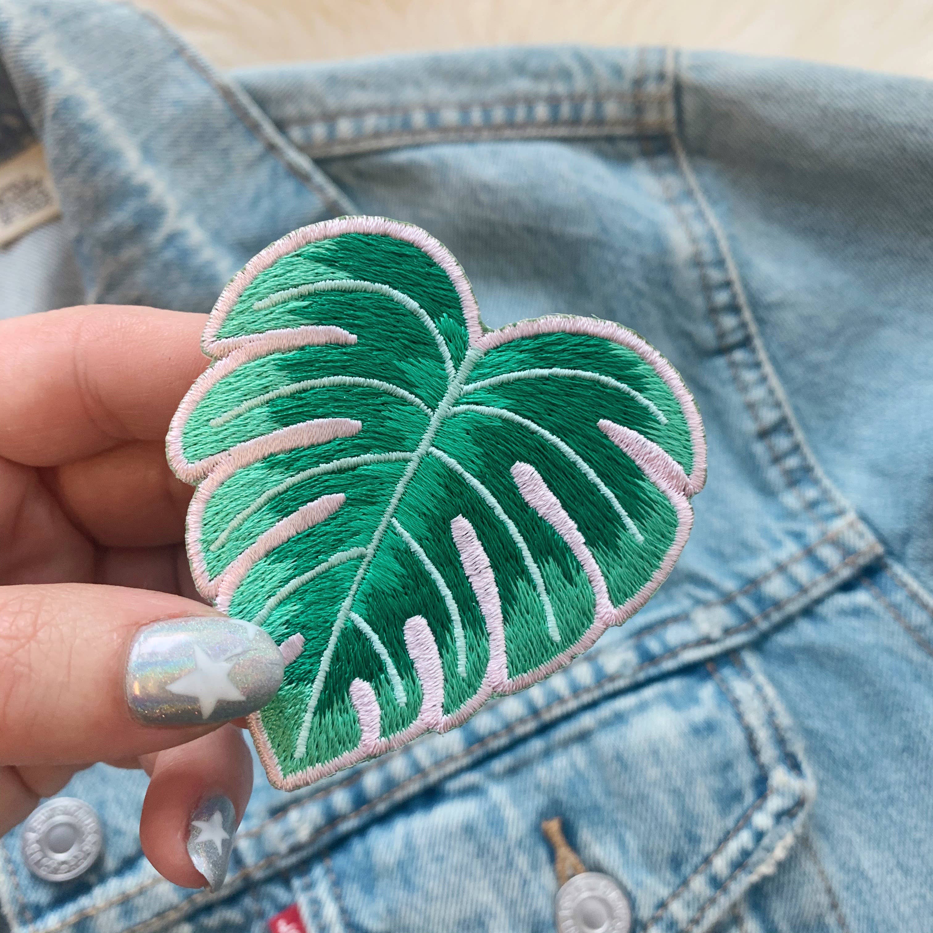 Monstera leaf patch is perfect for plant ladies! Show your love with this tropical patch intricately detailed in lush greens & framed by a blush pink heart-esque shape. Wildflower + Co. DIY patches. Use this patch for an instant update on just about anything! Wildflower + Co. patches feature iron-on backing & ship with instructions. - Measures approx. 2.5" high x 2.25" wide - Packaged on a card w/instructions - Designed by & exclusive to Wildflower + Co. - Imported - Intended for use