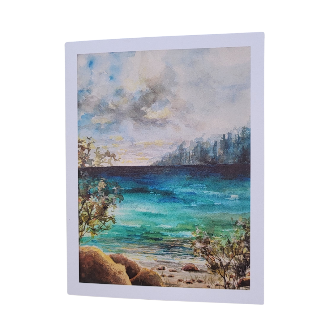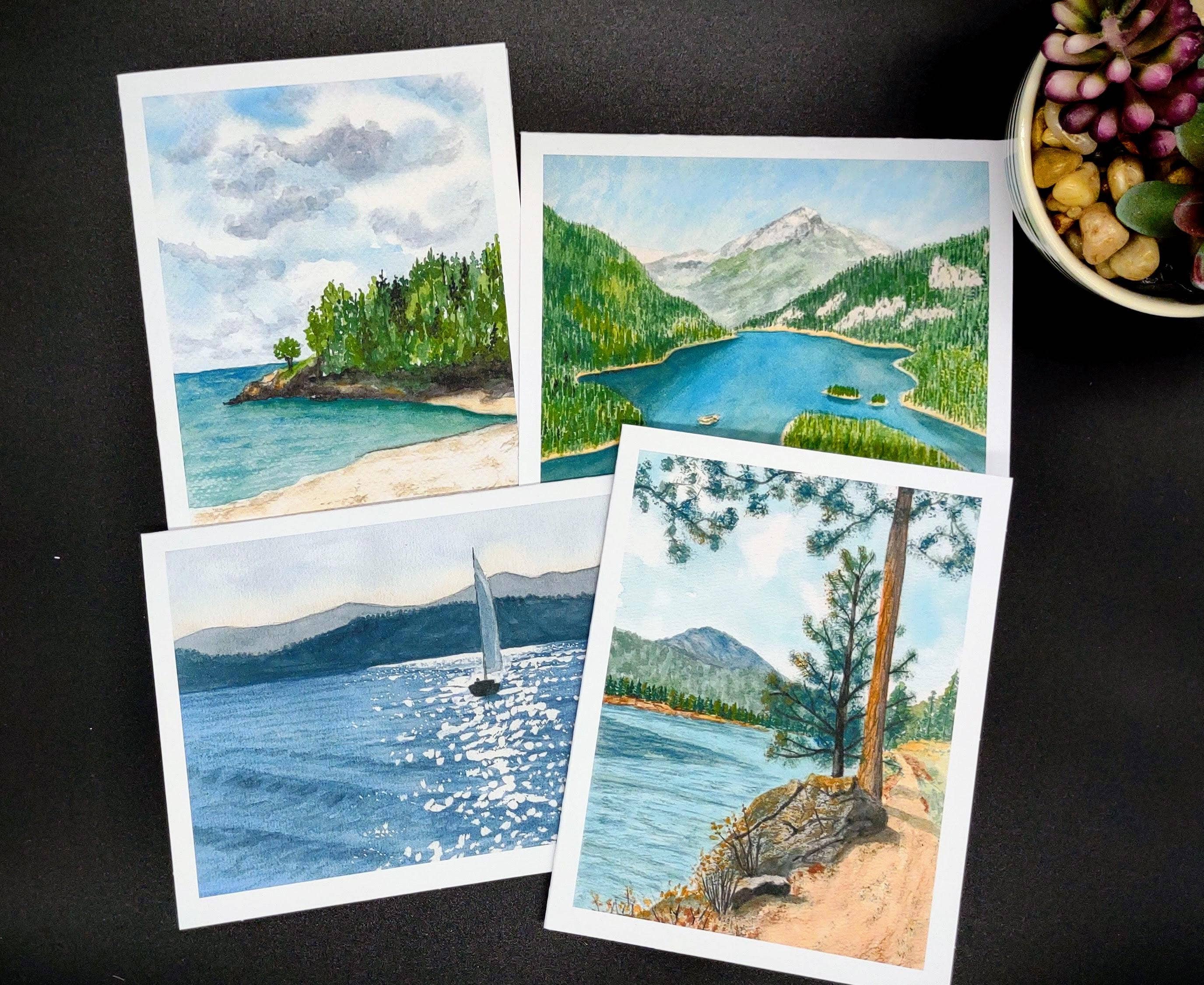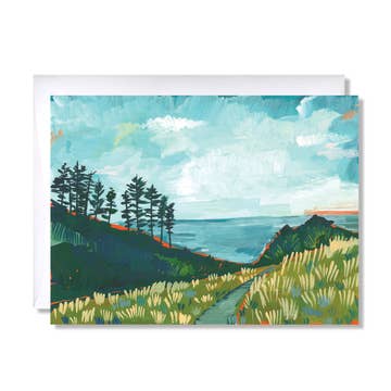 These Oregon greeting cards are printed from my original watercolor painting of this beautiful state. The image on the front showcases Ecola State Park. All 50 states available Originally hand-painted with watercolors Printed in the USA 6 pack A2 Envelopes included Extra Heavy-weight card stock Packaged in a clear cello sleeve and tied with blue & white twine Also available in art print and vinyl decal form