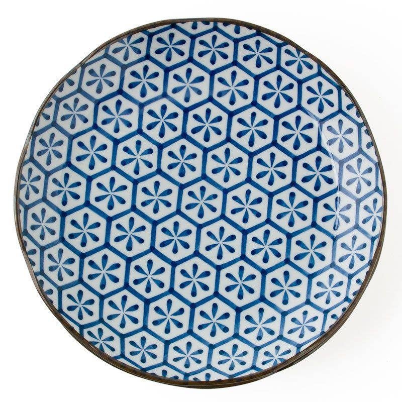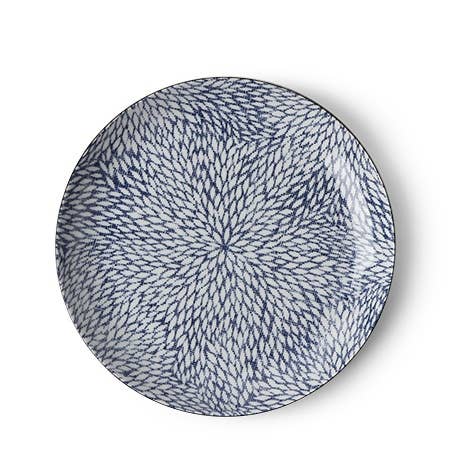 The bold blue lines in this Tokusa pattern seem to be bursting from the center creating a dramatic design for your table. 9" diameter x 1.5"h. Ceramic. Microwave/dishwasher safe. Made in Japan.