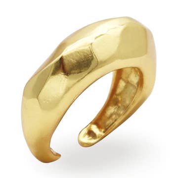 An organic take on the classic cigar band ring. beautiful on its own or stack two together for a more dramatic look. The Fragment Ring is a striking but classic addition to your wardrobe. - 3/8 inches wide - 14k yellow gold plated brass