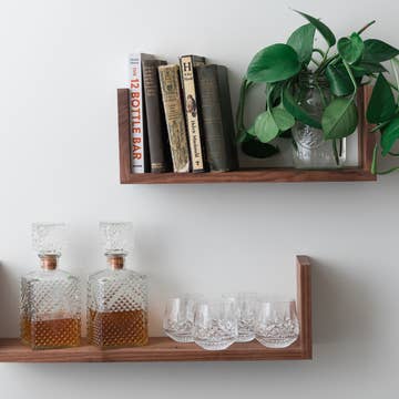A pair of shelves designed using the actual measurements of Tadashi’s hands Sold as a pair Mounts using 4 x drywall anchors & #6 screws (included). Material: Powder coated aluminum Dimensions: 5" x 7" x 1" (L x W x H) Each Shelf