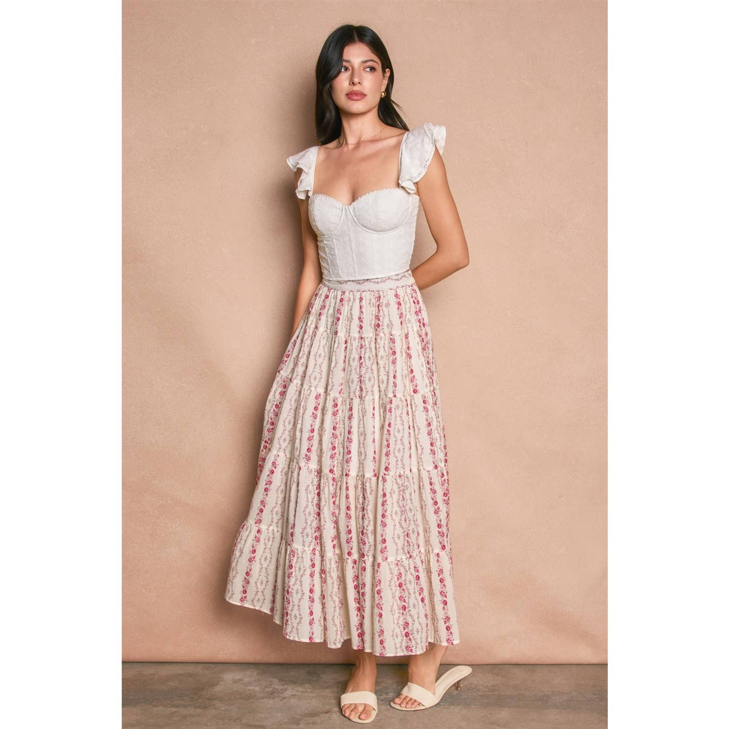 * Style No.: CS4395 CS4395 EMBROIDERY FLORAL PRINTED CHIFFON TIERED SKIRT