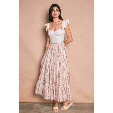 Cs4395 Embroidery Floral Printed Tiered Skirt