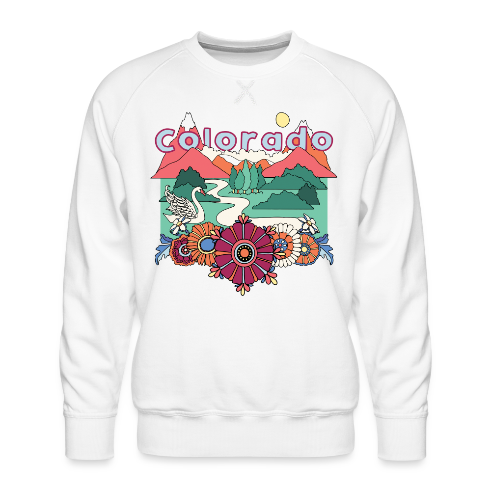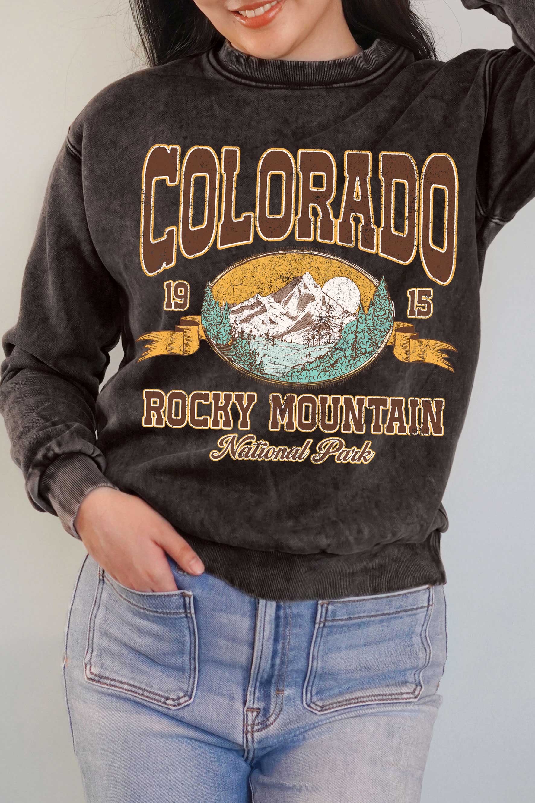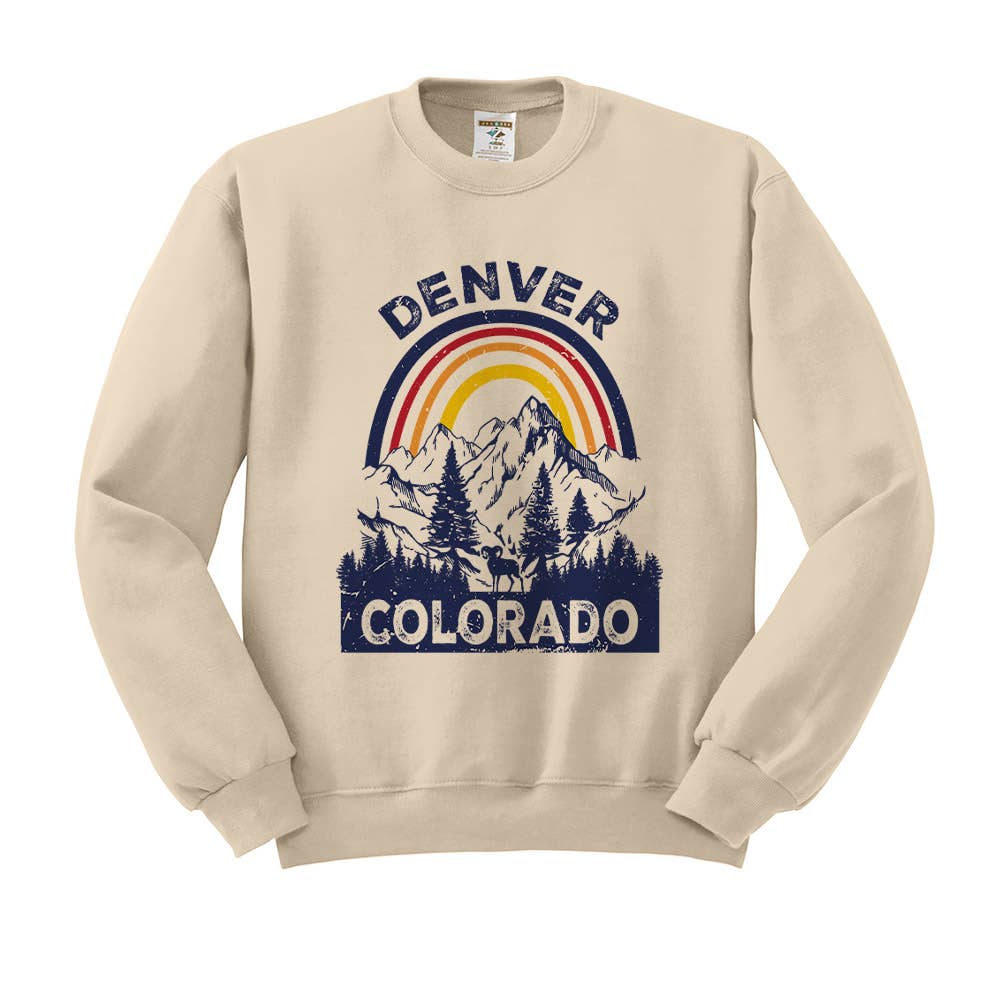 Our Colorado Crewneck in Forest is a screen printed sweatshirt with a white waterbased ink. This soft sweatshirt is made out of 52% ringspun cotton and 48% polyester fleece. This crewneck sweatshirt has unisex sizing.