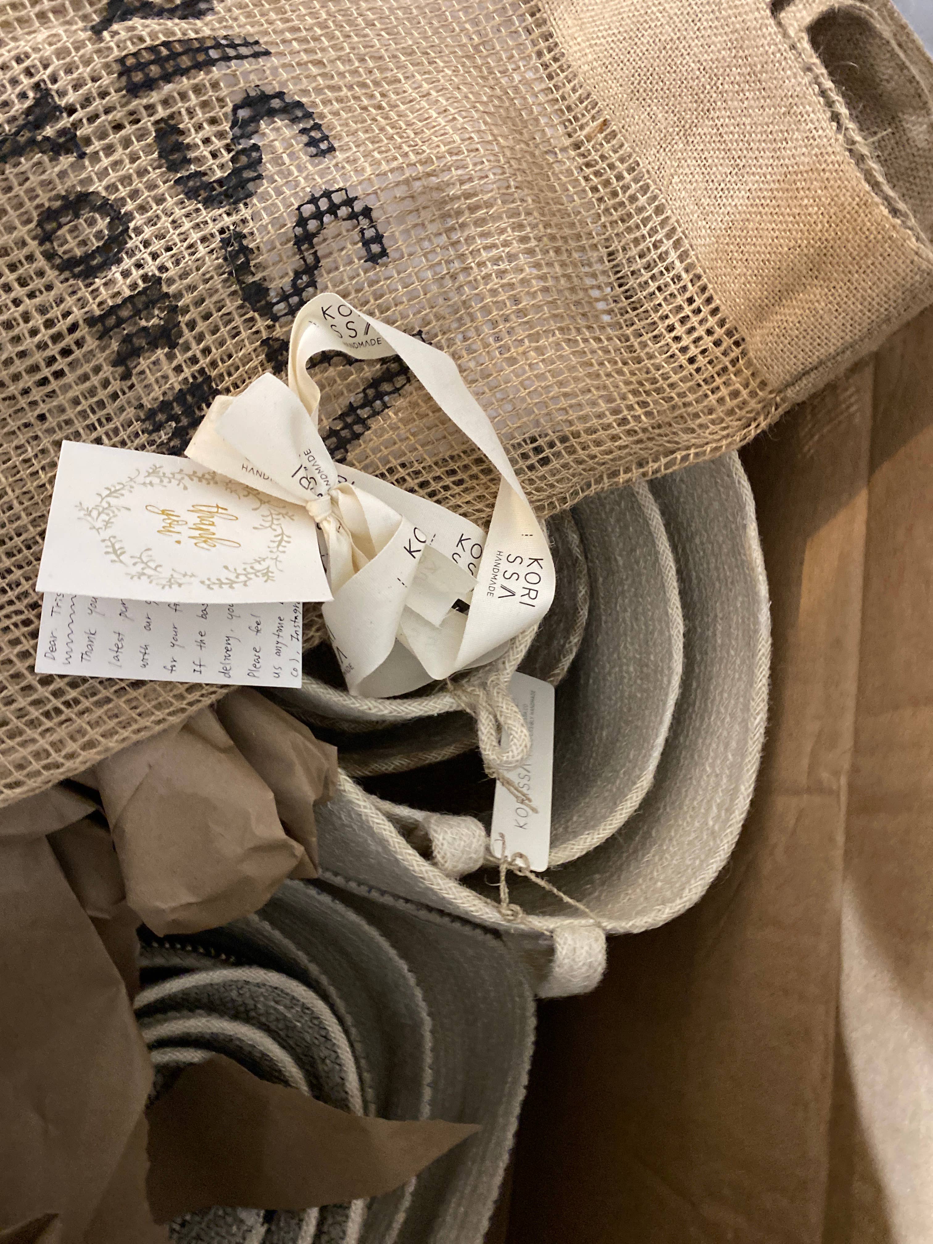 I received my order quick. Very well made baskets. I also received the sweetest note thanking me for my order and a free tote!!! The handwritten note made my DAY!!!!!! So thoughtful. I will order again.