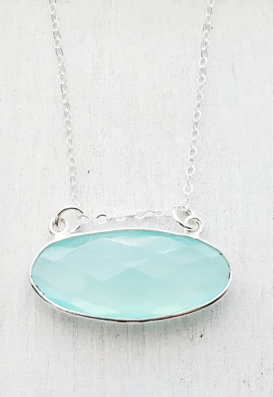 The colour of aqua blue/green sea glass is calming, seeming to change in every shade of light much like the sea does. One piece of 3/4" aqua seaglass, set in an oyster-like surround, with 16" diamond rolo chain necklace. Sterling silver, 14k Yellow Gold Fill or 14k Rose Gold Fill.