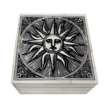 Immerse in the cosmic beauty of our Sun Moon Wood Dreambox from Woodcutts Inc. This small maple box is adorned with a sun and moon design, punctuated by a stunning Swarovski crystal for an added sparkle. Ideal as a thoughtful gift or a personal keepsake, it's a testament to over 40 years of craftsmanship and creativity. Handcrafted in our family-run shop in Englewood, Colorado, each piece showcases our commitment to quality and sustainability. Enjoy this unique piece as much as we enjoyed creating it.