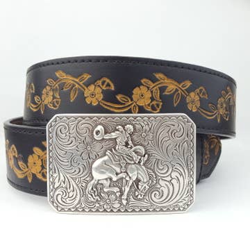 Two Tone Top Grain Leather Belt features a sleek finish accented with subtle contrasting tones, offering a refined twist on classic Western style. Made from high-quality, durable materials, it’s designed for both comfort and standout appeal. Perfect for dressing up or adding a polished edge to everyday outfits. Features: -Top Grain Leather -1 1/2" wide -Removable Buckle -1" between holes