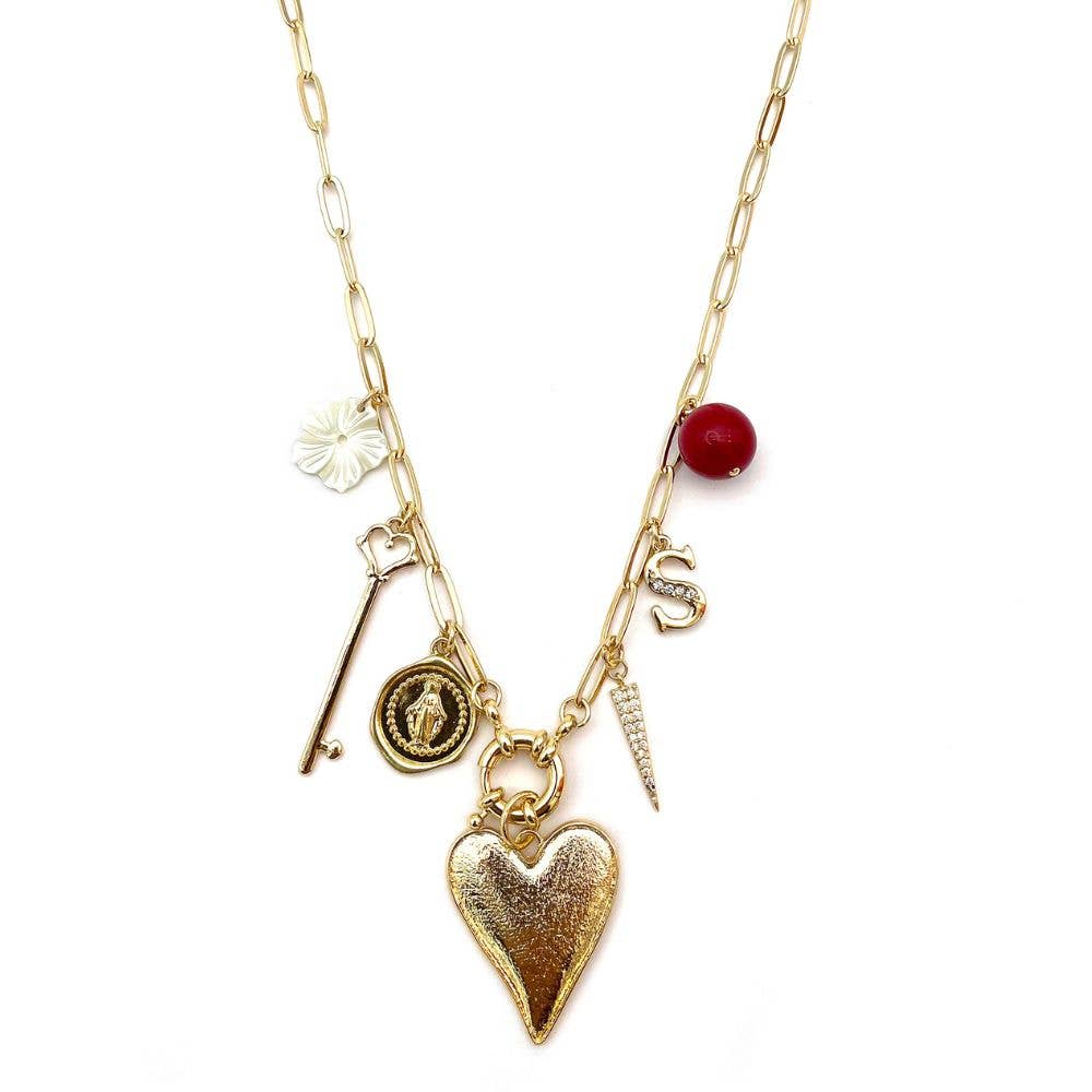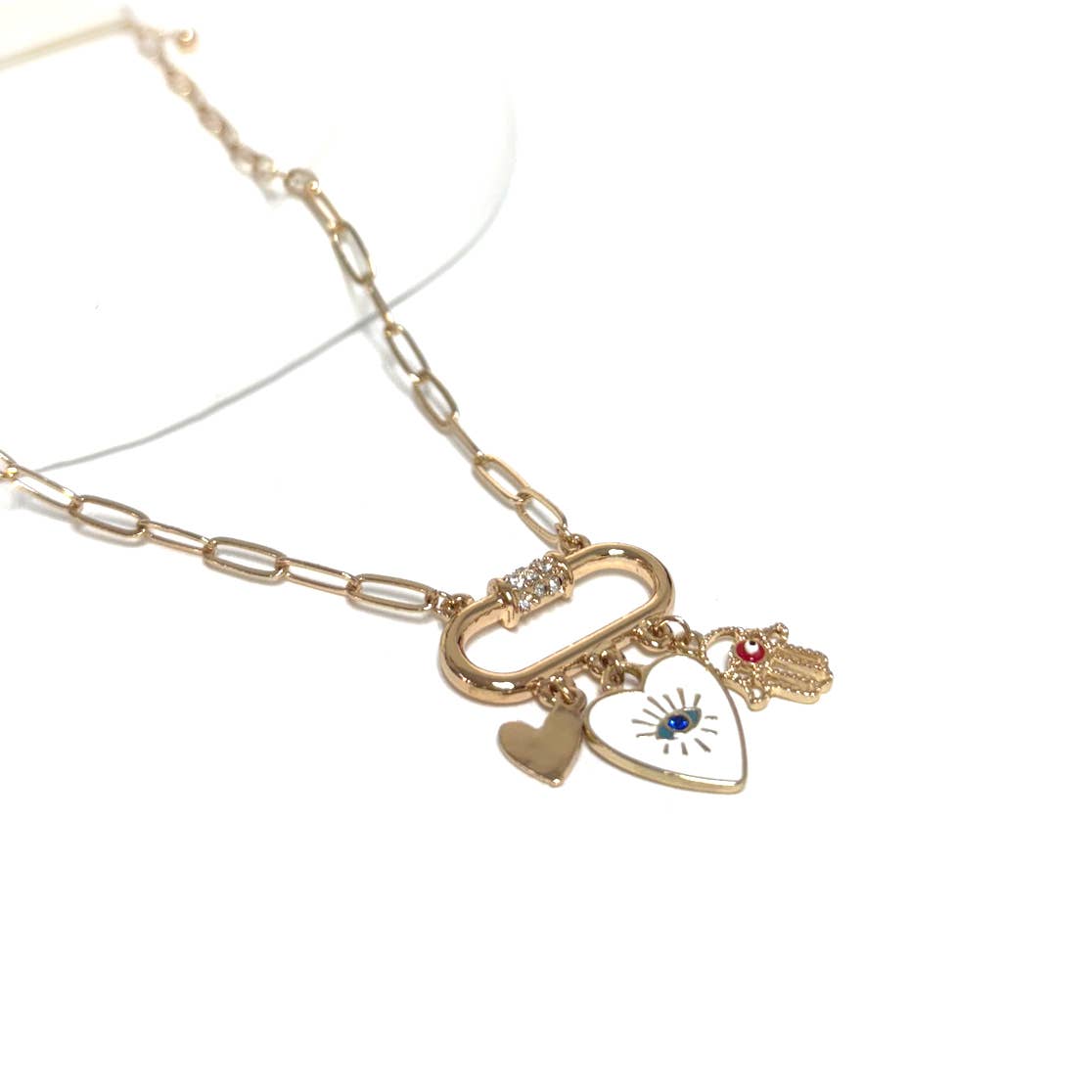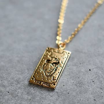 A rectangular tarot-card pendant framed in gold with tiny celestial details, two reaching hands, and a glossy red heart at center—symbolizing love and connection. Set on a delicate cable chain; luminous on its own and easy to layer. Finished in durable 18K gold plating. Material | Size | WeightMaterial: Stainless steel, 18K gold plating, enamel + cubic zirconia; nickel/lead freeSize: Chain 17.7" + 2" extender (45cm + 5cm); pendant ~25 × 12 mm; bail includedWeight: About 12.0 g