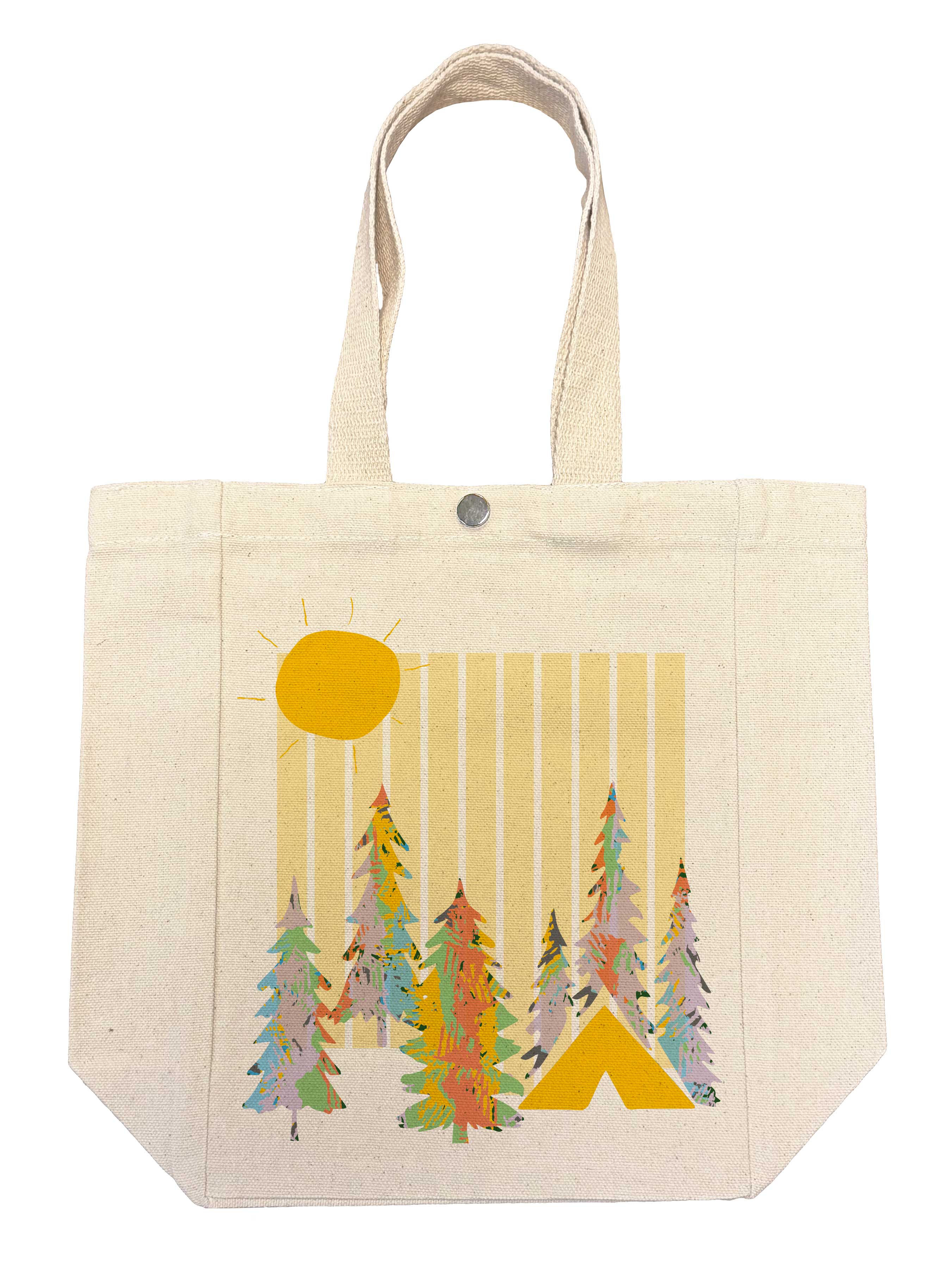 The Camp Out tote bag is perfectly sized for plans and surprises. Throw in your compact umbrella, cardigan or running shoes – all the essentials for each and every day. The campsite's comforts, the mountains' magic, and the forest's feel are all perfectly packed into this design from the Camp Out collection. Dimensions: W14 x H15 x D4in / Strap Drop 9in Material: 100% Cotton Care Instructions: Machine wash cold, hang to dry.