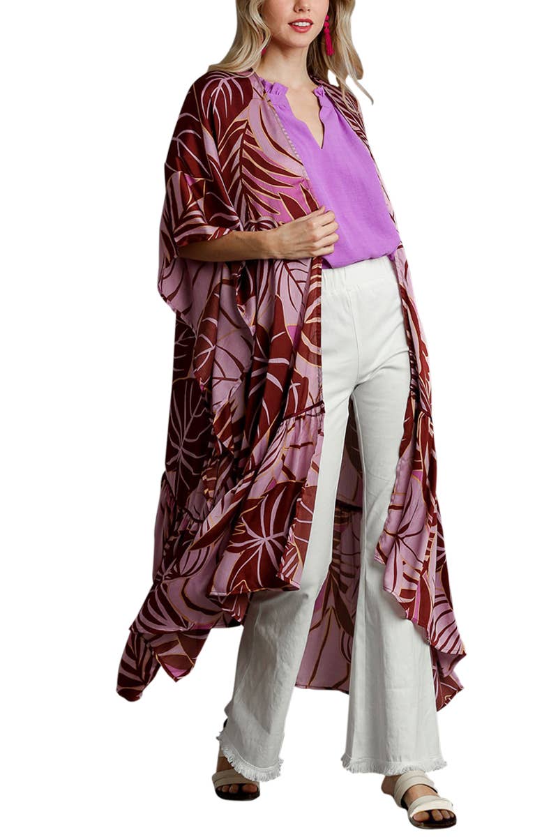 A solid color loose fit kimono style cardigan is a versatile and comfortable garment that can be worn in a variety of settings. This type of cardigan typically features a flowing and relaxed silhouette, inspired by traditional Japanese kimono robes. The cardigan can be dressed up or down, depending on the occasion. It can be worn over a basic tank top and jeans for a casual daytime look, or paired with a dress and heels for a more formal occasion. The versatility of the cardigan makes it perfect for travel or transitional seasons when the weather can be unpredictable.