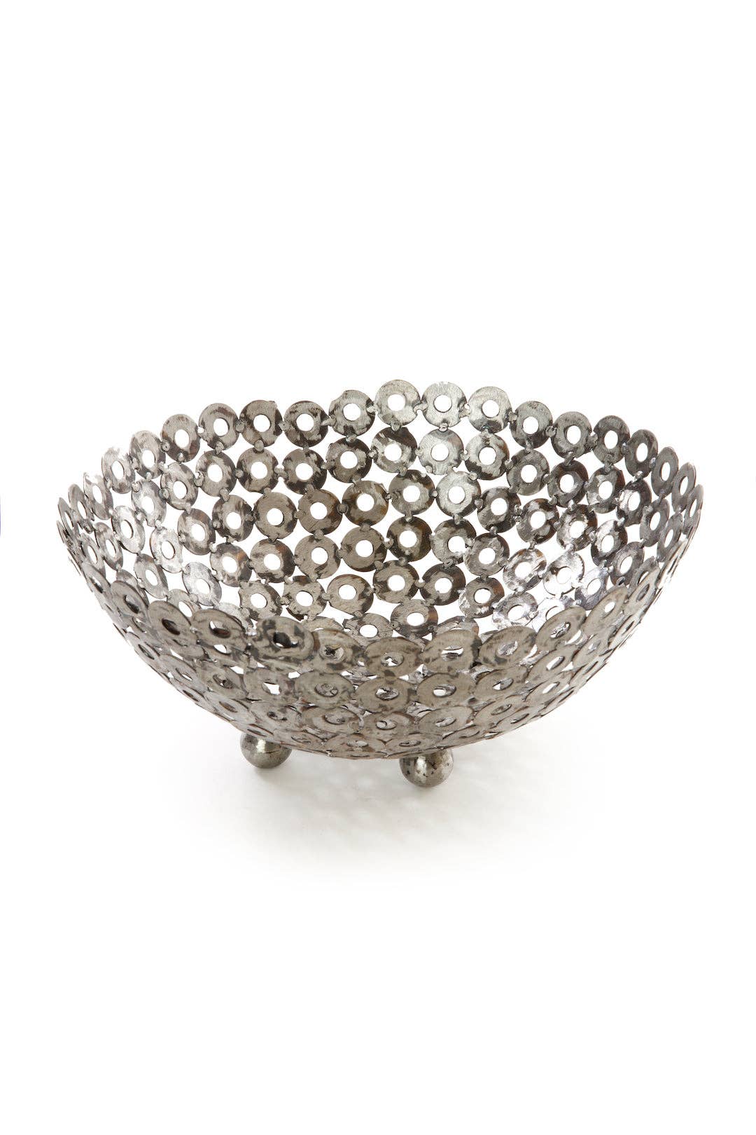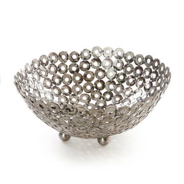 Make it easy to remember where you put your keys with the handcrafted Key Bowl from India. Our fair trade partner Noah's Ark has helped makers develop innovative designs, incorporate alternative materials and find new markets for their work. Antiqued copper-colored metal bowl made of assorted recycled iron keys - 6.25D (top) x 2.25H inches - Handcrafted in India