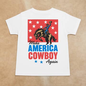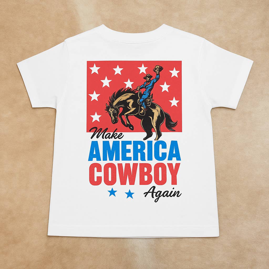 Ali Dee Kids This Country Needs More Cowboys western graphic tee by Ali Dee. Heather Denim with cream screen printed artwork. Open Pack Pick Your Sizes Min of 8 Units