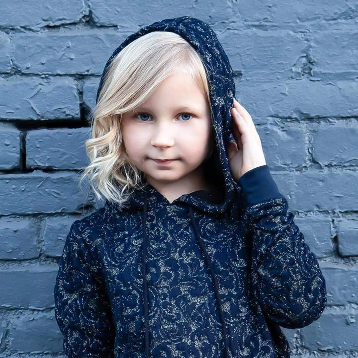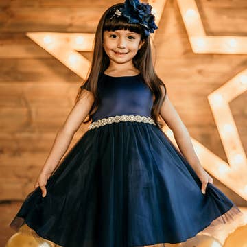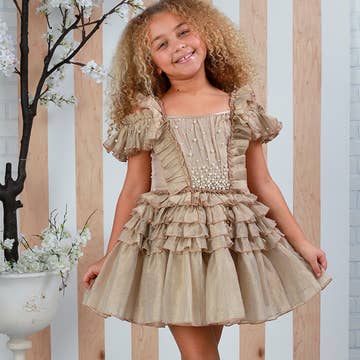 Your little one will feel like a shining star in our Darling Dress in Gold Crystal! It is a gold metallic fabric that's stretchy, shiny and most importantly: comfortable!The stretchy, soft fabric allows for comfort and functionality! Pullover styling Two Front Pockets A-Line Silhouette