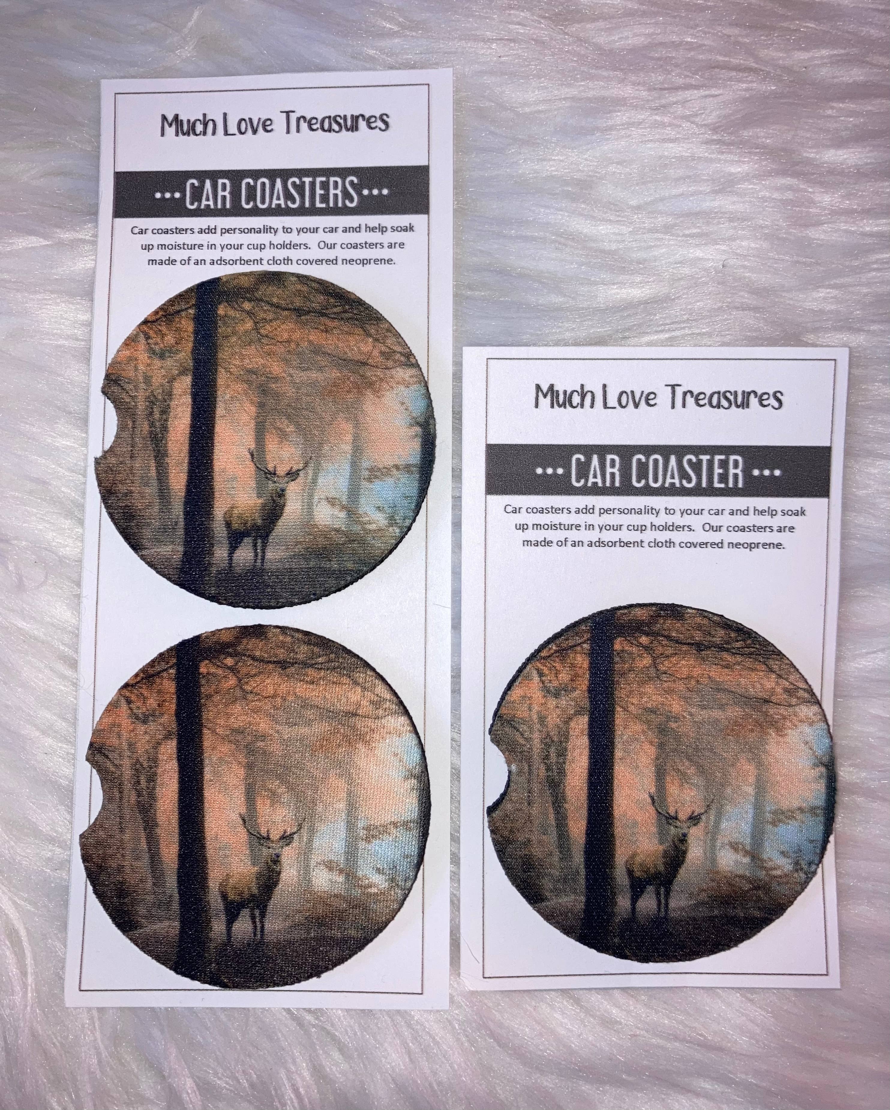 Manufactured in the USA of absorbent stone to absorb excess condensation from beverages. Assists to keep your car's cup holder clean and dry. Convenient notch on side of the car coaster, makes it easy to remove while detailing your car. Beautiful artwork adds distinction to your vehicle’s interior. Clean the coaster by wiping clean with damp cloth and mild detergent. Measures 2.6 inches round and fits most vehicle cup holders. Find that special design to complete your vehicle's personality. Family and Friends will love receiving these long lasting, attractive Coasters for any occasion of the year. Comes in Polybag with Hang Tab.