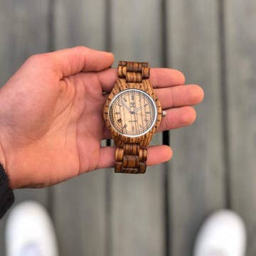This premium wood watch is carefully crafted from high quality zebra wood and is paired with a matching butterfly wood clasp made from the same fine material. Zebra S - Obsidian Black Gender specific: Men's Case: Black Sandalwood (44mm) Movement: Japanese quartz Battery powered: lifetime 2 - 3 years (easily swappable) Strap: Zebra & Black Sandalwood Glass: hardened mineral crystal Water resistance: up to 1 ATM (splash resistant) Complimentary with each order: - 2 Year Warranty - Premium Packaging - Free Shipping & Returns - 24/7 Customer Support All natural materials, designed around a high quality Japanese quartz movement, ensures a one-of-a-kind timepiece to compliment ones own unique style. This watch also makes the perfect gift for any occasion! AVANTWOOD® Est. 2014