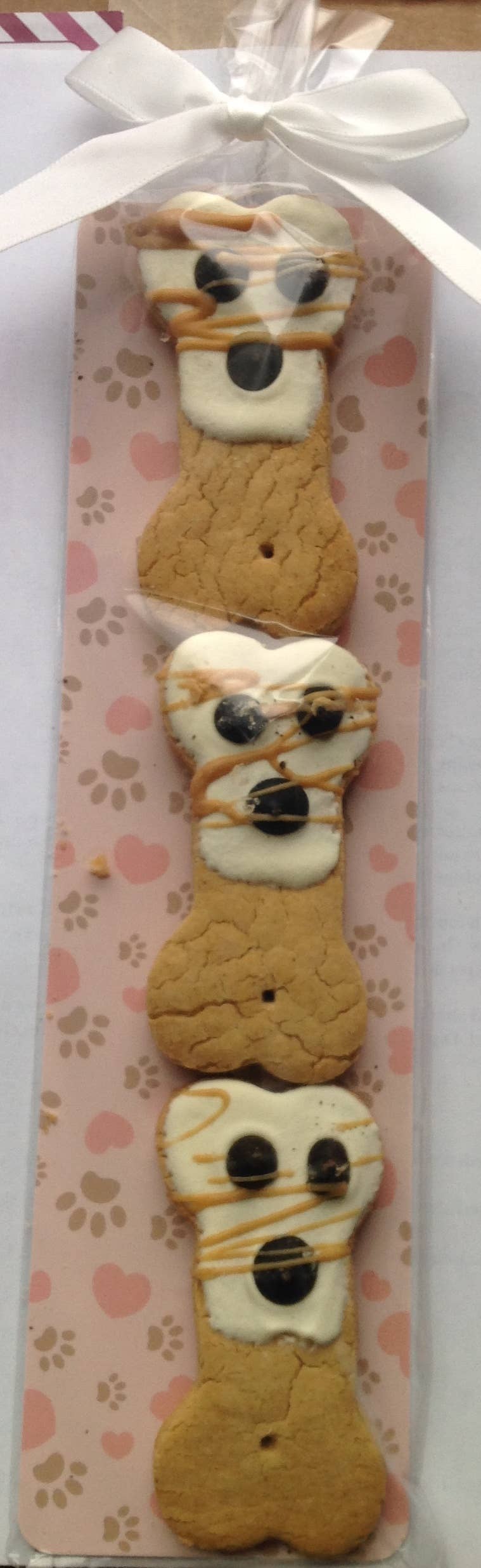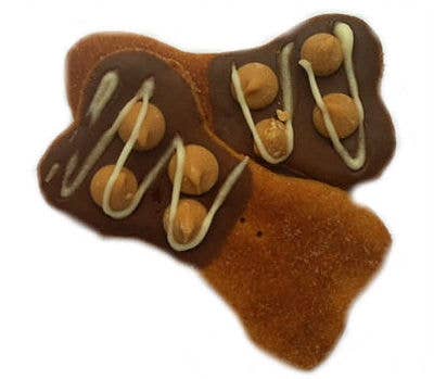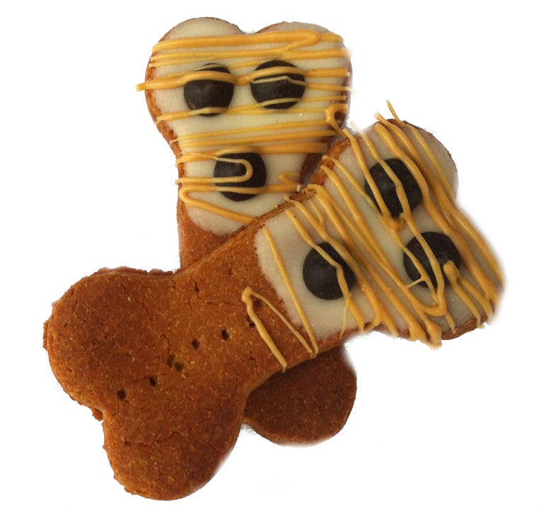 These treats will arrive unpackaged. Ingredients: natural creamy peanut butter, water, gluten free all purpose flour (garbanzo bean flour, potato starch, tapioca flour, whole grain sweet white sorghum flour, fava bean flour). Yogurt icing; natural yogurt powder (nonfat milk solids, lactic acid, and cultures), corn starch, soluble corn fiber, dried egg whites, and carob powder. Sprinkled with unsweetened coconut. Treats are 3 inch in size. These treats are gluten-free and wheat-free. 8 Month shelf life. Made in the USA. Made with human grade in ingredients. No preservatives. No byproducts. Crude moisture 7% Crude protein 16% Crude fat 22% Crude fiber 1%