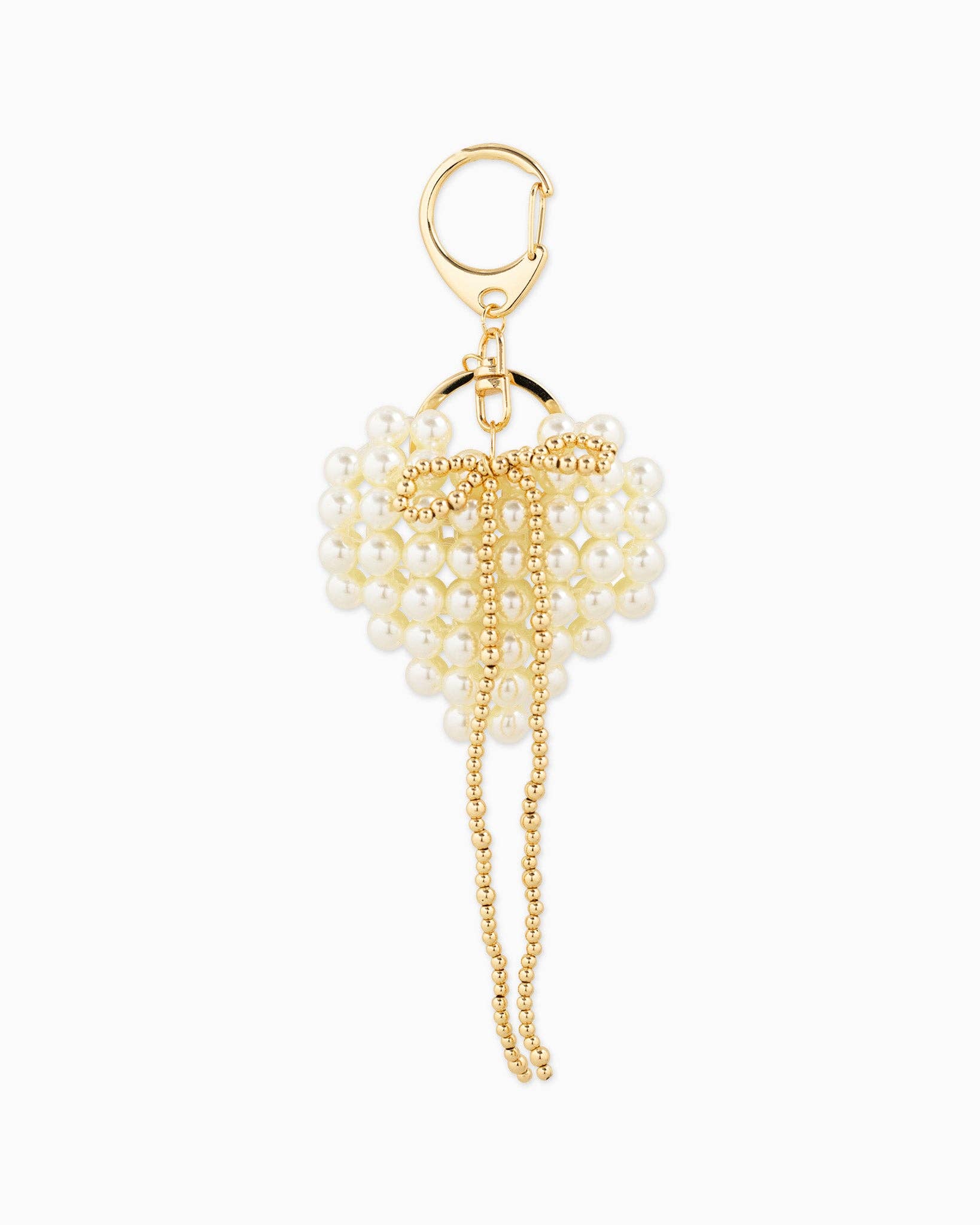 Introducing our bag charms, accessories for your accessory! Add a pop of personality with this classic and feminine bag charm keychain. Size: 80*110mm / 55*31mm Bow / 4mm, 6mm Acrylic Pearl Material: Zinc, CCB, Acrylic Pearl