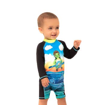 Dress your little one in style while protecting his skin with the Sonny Rashguard Swimsuit. This one-piece features a convenient zipper front closure for easy dressing. If you want excellent UPF 50+ protection and style, make a splash in the Sonny Rashguard Swimsuit. Snap closure for easy diaper changes up to size 2 yr. SIIX Collection swimwear is UPF 50+ Fabric: 81% Polyester / 19% Lycra Care: Machine wash cold on delicate or hand wash. Lay flat to dry.