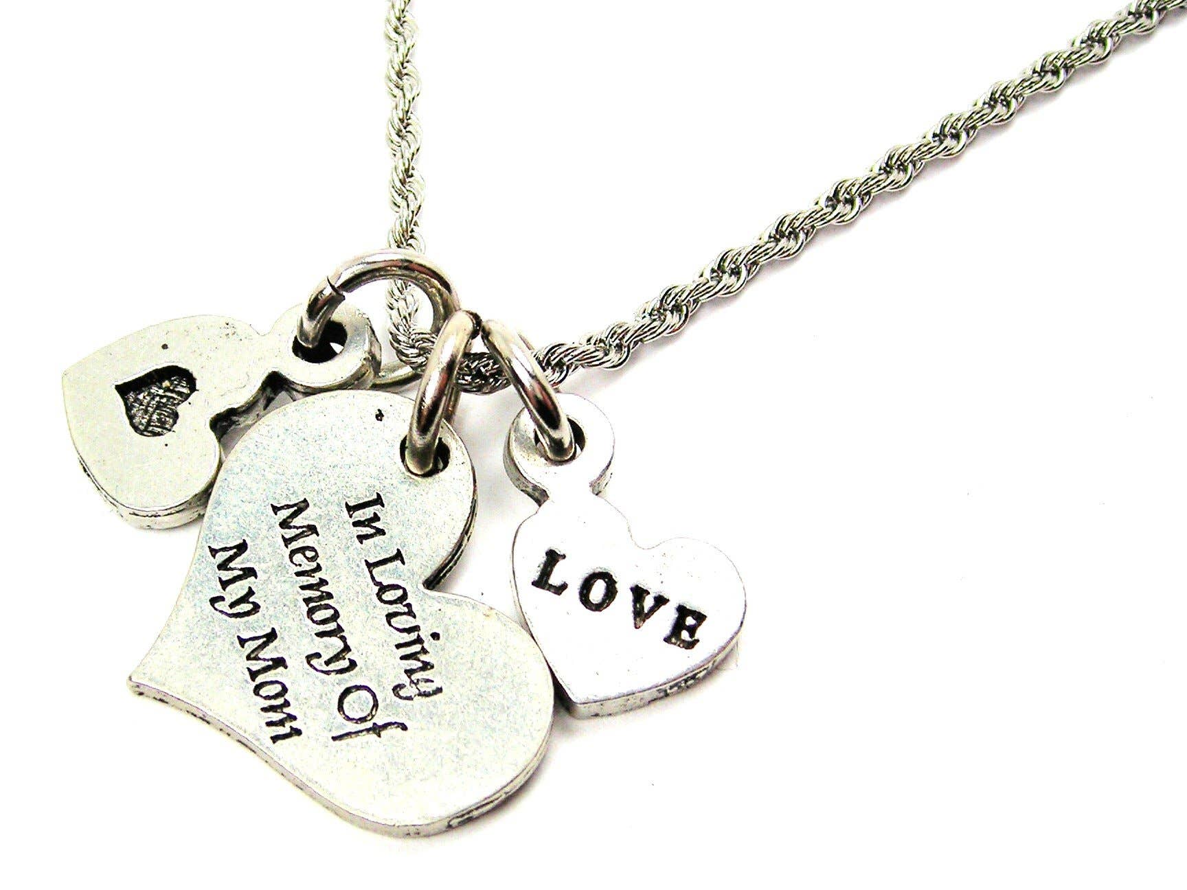 A Piece Of My Heart Is In Heaven 18" Necklace with Aqua Blue Crystal Accent. This decorative necklace comes on a stainless steel chain and 18 inches. Each necklace includes a crystal accent bead in white and an accent he.art. Our charms are 100% hand made with American pewter.