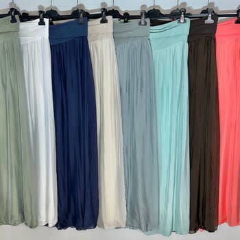 Silk trousers, loose fit, stretchy waist, full length. Care instructions: hand wash with washing powder.