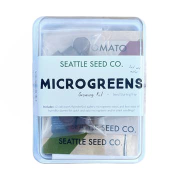 Our newly designed and improved kit has everything you need to grow Seattle Seed Co. microgreens and start seeds at home! With the cost of ready-to-eat microgreens rising rapidly, it makes so much sense to grow them at home. They are so quick and easy that you can be eating fresh microgreens within a week. This starter kit provides enough supplies to grow 5 complete batches of greens. Kit includes: -Growing tray with two sizes of humidity domes; tall for seedlings and short for microgreens. -12 cell seed starting insert. -Large pack of non-GMO microgreens seeds (varieties can vary). -One randomly selected pack of vegetable, herb or flower seeds. -5 large Wondersoil wafers (for 5 complete cycles of microgreens). -12 small Wondersoil wafers for the seed starting tray. -A recipe card to help you get started using your microgreens in creative ways. -Seed starting guide for beginner gardeners.