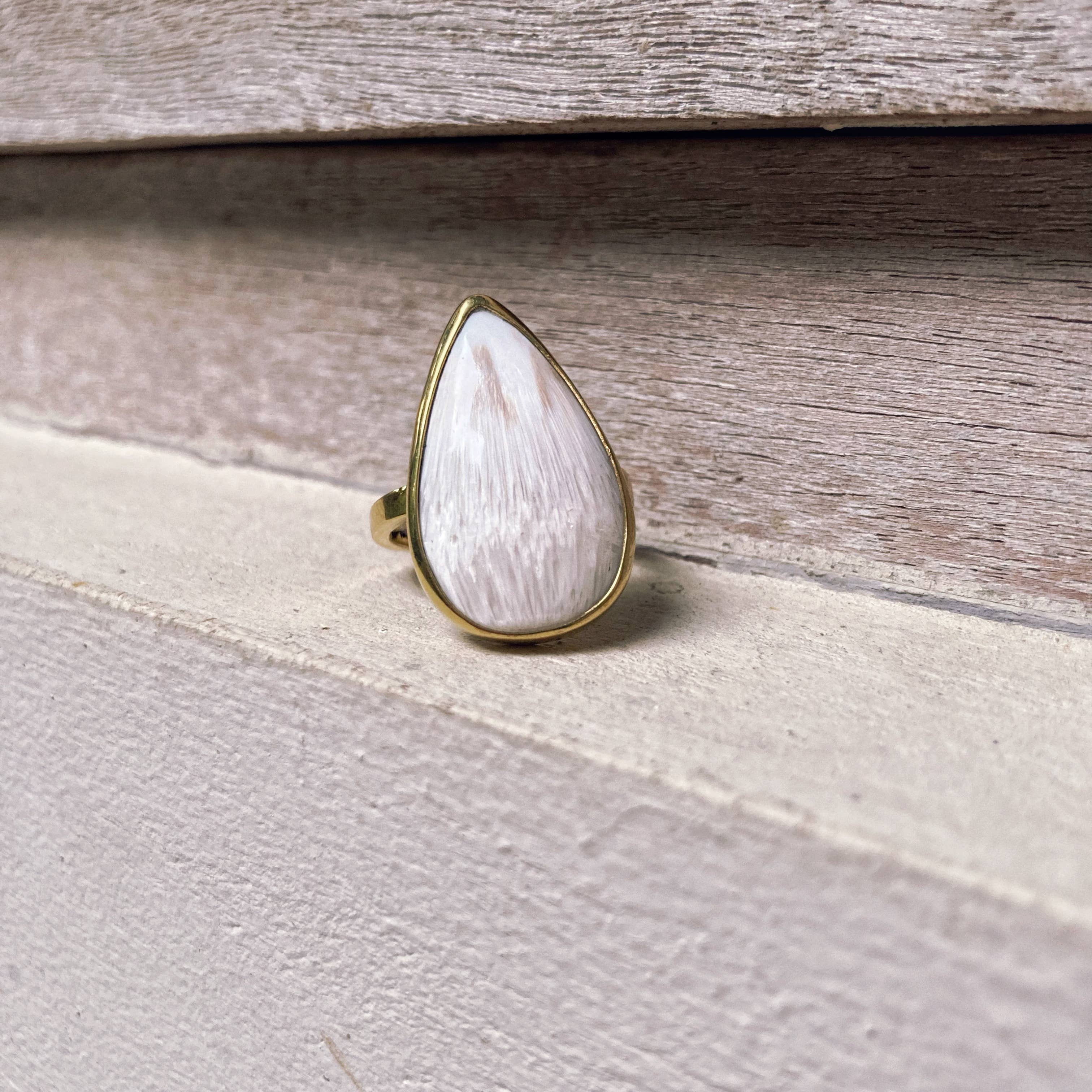 Unique Pyramid Shape Garden Quartz Ring - Nickel Free Brass