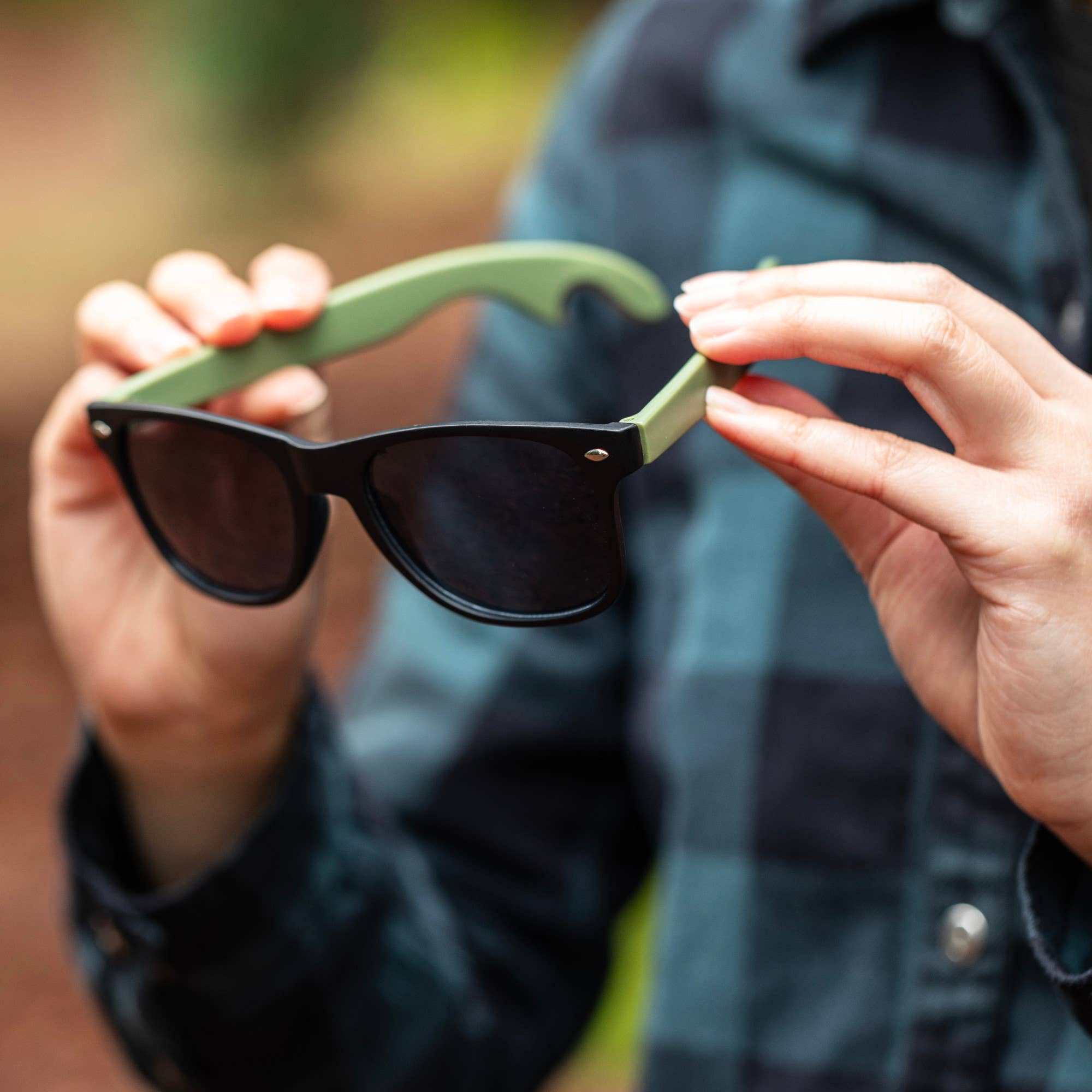 Bottle Opener Sunglasses in Matte Black with Olivine Lenses